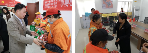 活动中,双方党支部党员对“三八”国际妇女节仍坚守一线工作岗位的环卫女职工表示崇高的敬意,并对他们无私奉献、任劳任怨的品质表示赞许,同时向环卫职工送上慰问品。