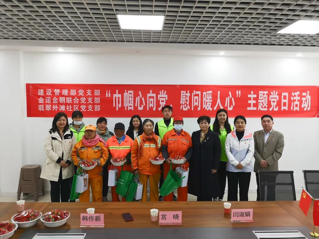 3月8日,集团建设管理部党支部、金诺金朝联合党支部赴华山街道翡翠外滩社区开展“巾帼心向党,慰问暖人心”主题党日活动。