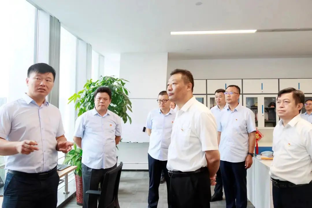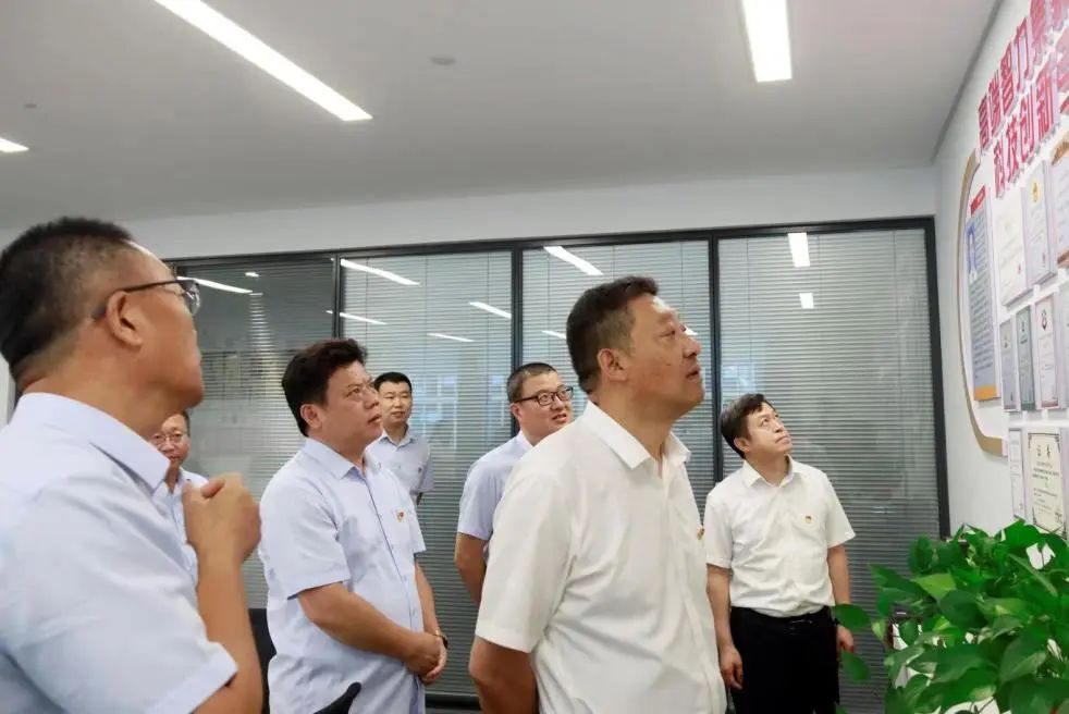 7月28日,304am永利集团党委副书记钟善良带队到金曰公司调研党建业务融合发展工作,现场察看公司党员活动阵地、院士专家工作站及张策工作室建设情况。