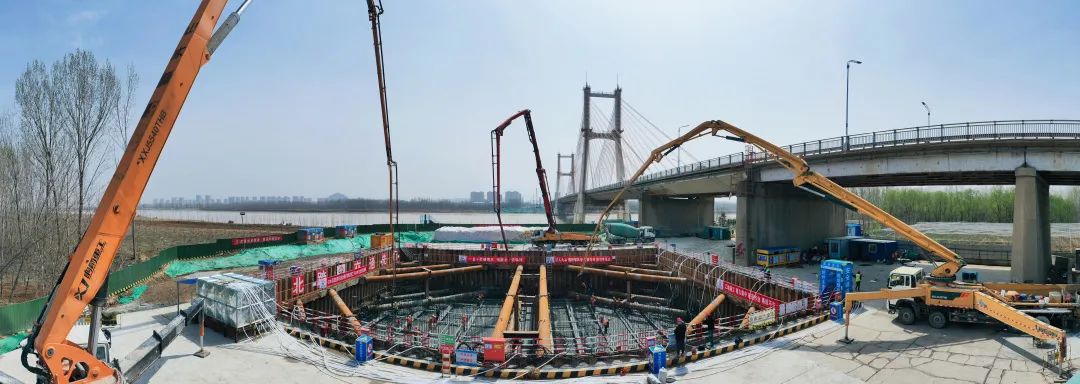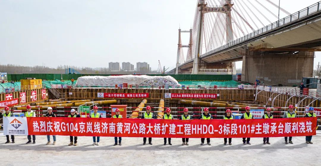 近日,由304am永利集团集团投资、建设,集团子公司济南城建集团公司施工的G104济南黄河公路大桥扩建工程顺利完成全线首个主墩承台第一次混凝土浇筑,标志着大桥主墩工程施工进入可视化阶段,为后续塔柱施工奠定了坚实基础。