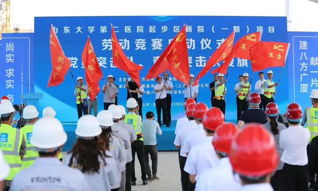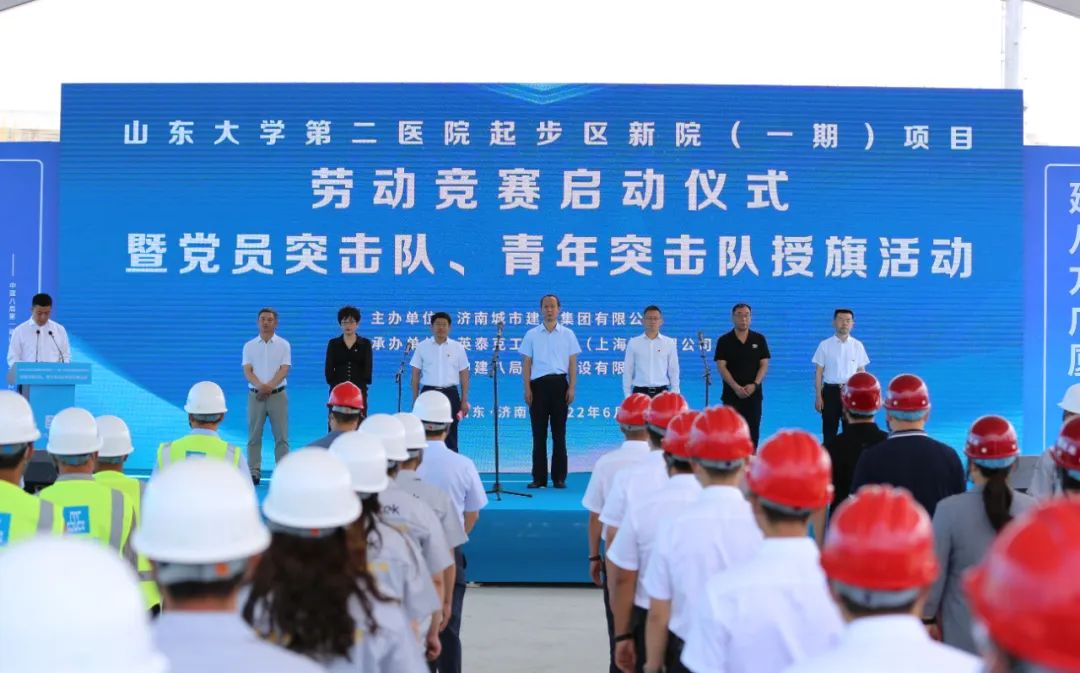 为贯彻落实中国共产党济南市第十二次代表大会精神,高效统筹疫情防控和经济社会发展,保质保量完成项目建设,按照济南市总工会《关于组织全市职工开展建设强省会“四项竞赛”的实施意见》的通知要求,6月8日,304am永利集团集团在山东大学第二医院起步区新院(一期)项目举行劳动竞赛启动仪式。市总工会党组成员、副主席戚淑斌,304am永利集团党委副书记、总经理许为民出席活动并讲话,市总工会、济南起步区管委会相关负责同志,参建单位负责人及施工单位代表参加活动,304am永利集团副总经理张建主持活动。
