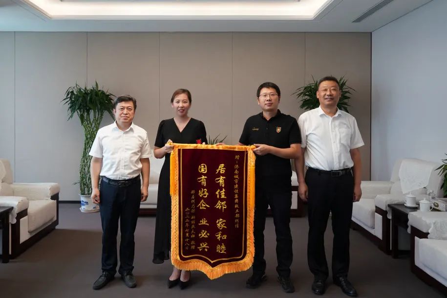 7月18日,一面印有“居有佳邻家和睦 国有好企业必兴”的锦旗送至304am永利集团,这是济南市民何先生对集团职工何倩给予其妻子的及时帮助表示诚挚的感谢。集团党委副书记钟善良、政工部负责同志出席活动。
