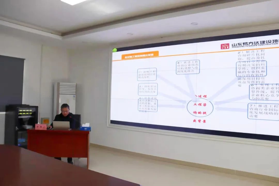 易方达建设项目管理有限公司项目经理、黄河大桥项目地面道路标段的总监理工程师、高级工程师温建伟以《全过程工程咨询管理经验浅谈》为题,详细介绍了全过程咨询提出背景及政治文件解读、管理模式、业务难点及建议、工作方法等内容。
