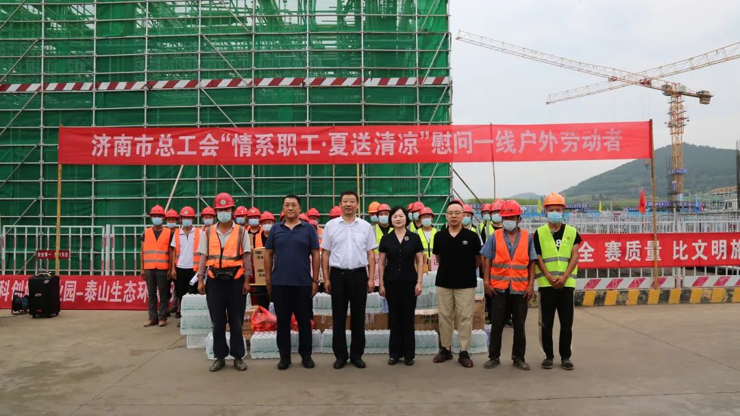 活动中,慰问人员将防暑降温慰问品送到建设者手上,感谢他们为济南建设所作出的贡献,并叮嘱大家劳逸结合,增强自我防护意识,避免高温及疲劳作业,统筹抓好疫情防控、安全生产和项目建设工作。