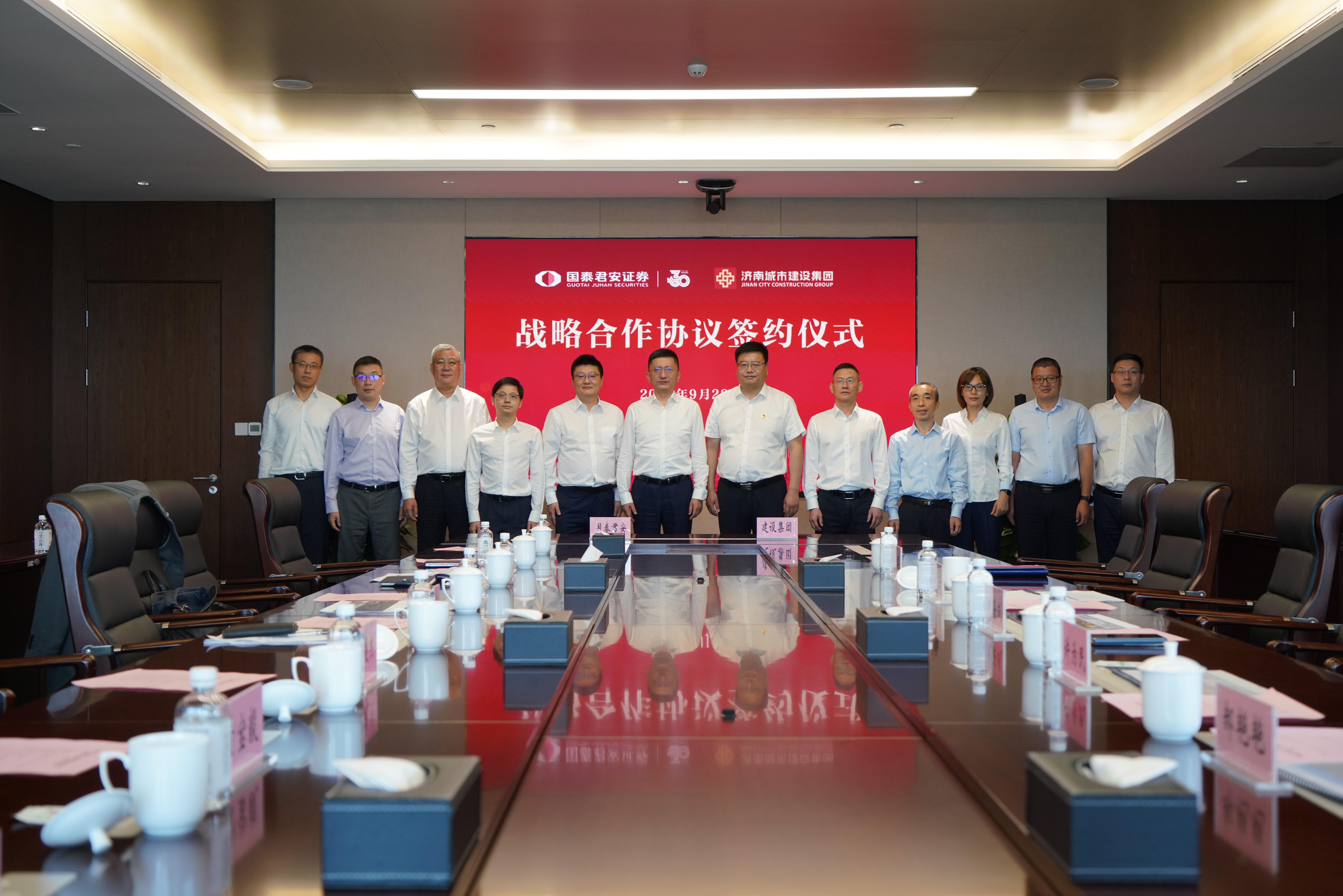 9月28日,国泰君安证券股份有限公司(以下简称“国泰君安”)党委书记、董事长贺青,副总裁龚德雄、李俊杰一行到集团考察,并开展座谈交流。集团党委书记、董事长史海成,党委副书记、总经理许为民,总会计师范天云参加活动。座谈会后,国泰君安副总裁李俊杰与集团总会计范天云代表双方签署战略合作协议。