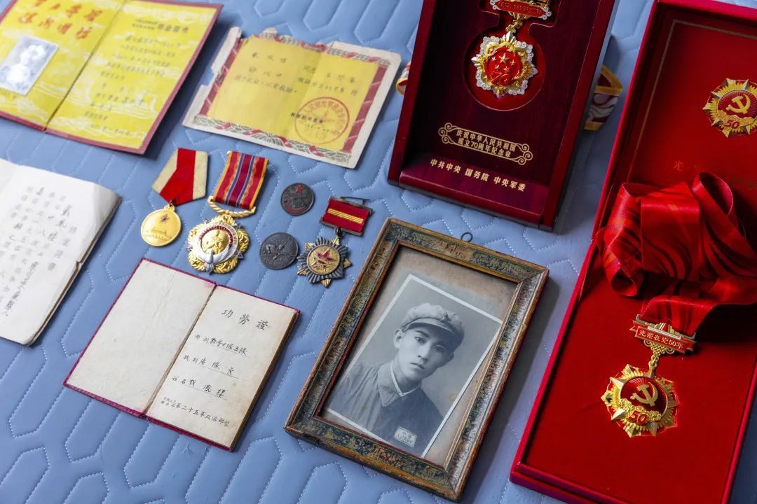 采访过程中,已是96岁高龄的戴老对许多事情已经记忆模糊,但对革命生涯的起点依然记忆犹新,“我是老百姓的孩子,年轻时当了兵,那时候啥也不懂,没有文化,多亏了党把我培养了起来,扫了盲、入了党,我感恩共产党,一辈子跟党走”,戴老说道。对于多年荣获积累下来的勋章,戴老依然是如数家珍、视为至宝,“我们家是革命家庭,这些勋章不仅是我一个人的纪念,更是祖祖辈辈的纪念,是我们家的‘传家宝’,要一代一代传承下去”,戴老说道。