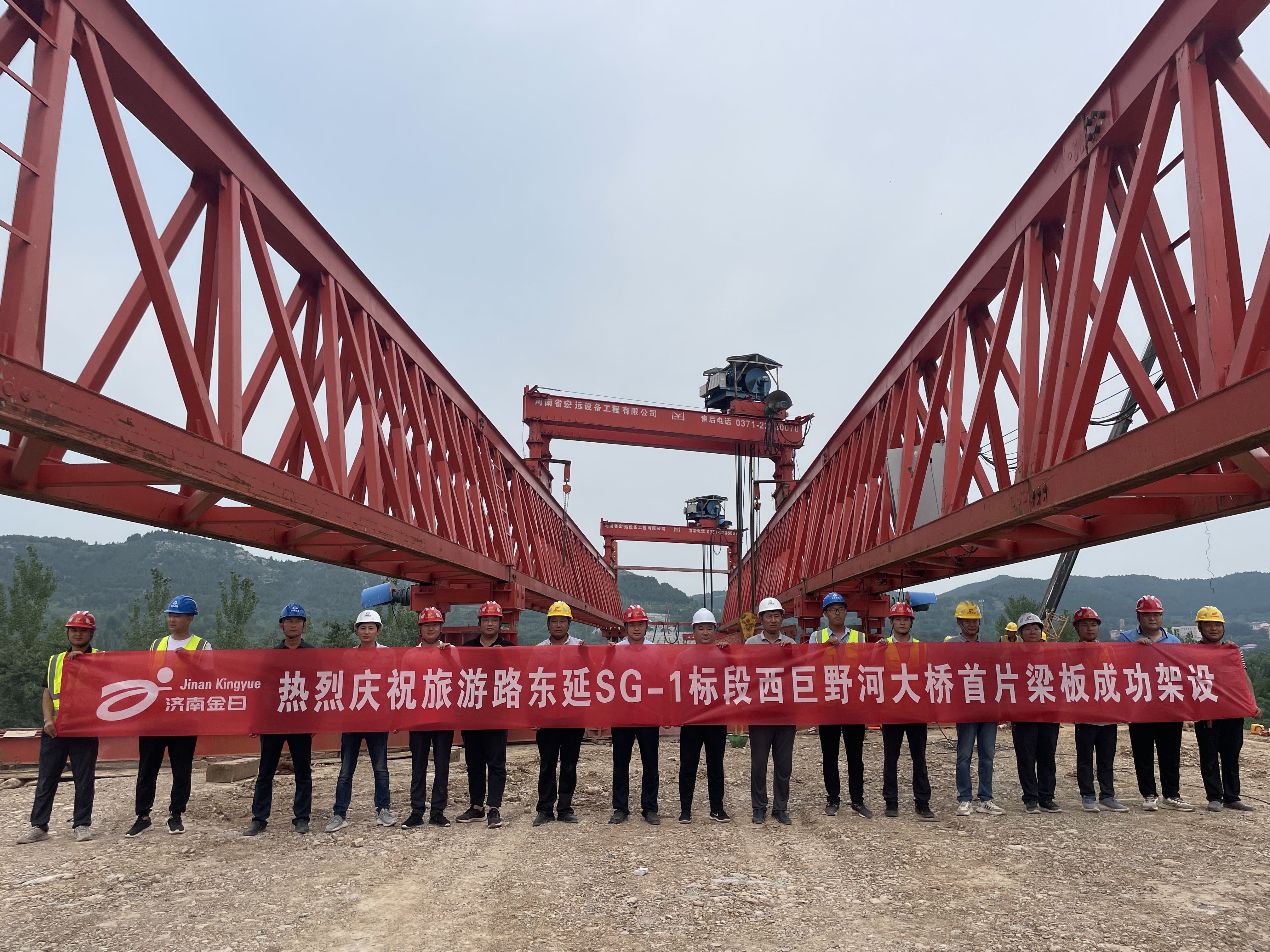 7月2日,由304am永利集团集团所属济南金曰公路工程有限公司承建的旅游路东延一标段西巨野河大桥顺利完成首片箱梁架设,标志着项目正式进入上部结构施工阶段。