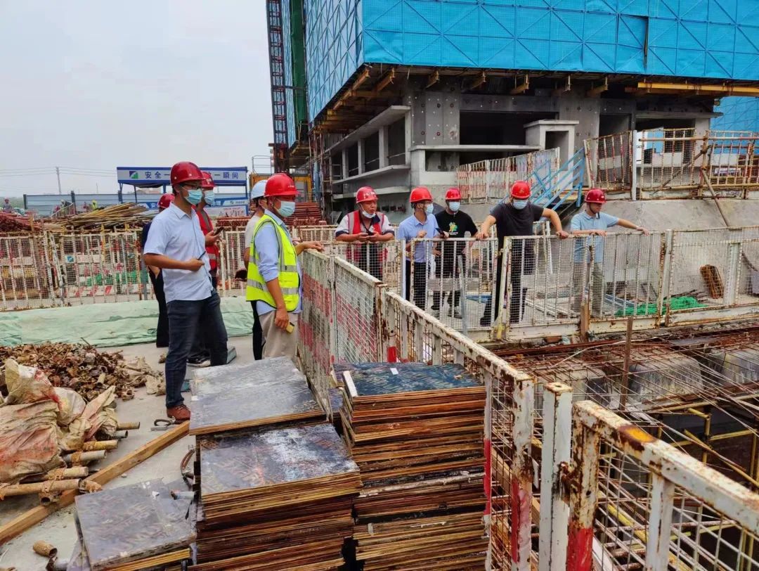 检查组详细查看了各项目防汛值班记录、来访人员登记、防汛防疫物资储备、水泵设备运行、应急预案等方面的情况,随机抽查了现场工人实名制管理、“一人一档”、“七天两检”等疫情防控措施,实地巡查了基坑边坡、内外脚手架、塔机、临电、场地排水、临建设施、生活区等重点部位、重点场所。