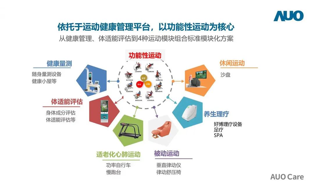 运动健康中心为会员客户建立个人健康档案,通过健康检测、运动数据采集,进行健康评估,生成健康报告,并自动生成康复运动建议和方案。每个会员客户的各项健康监测数据、指标可通过无线网络传输,与电脑、智能手机等终端进行捆绑,也可通过手机APP软件即可实时掌握身体健康状况。
