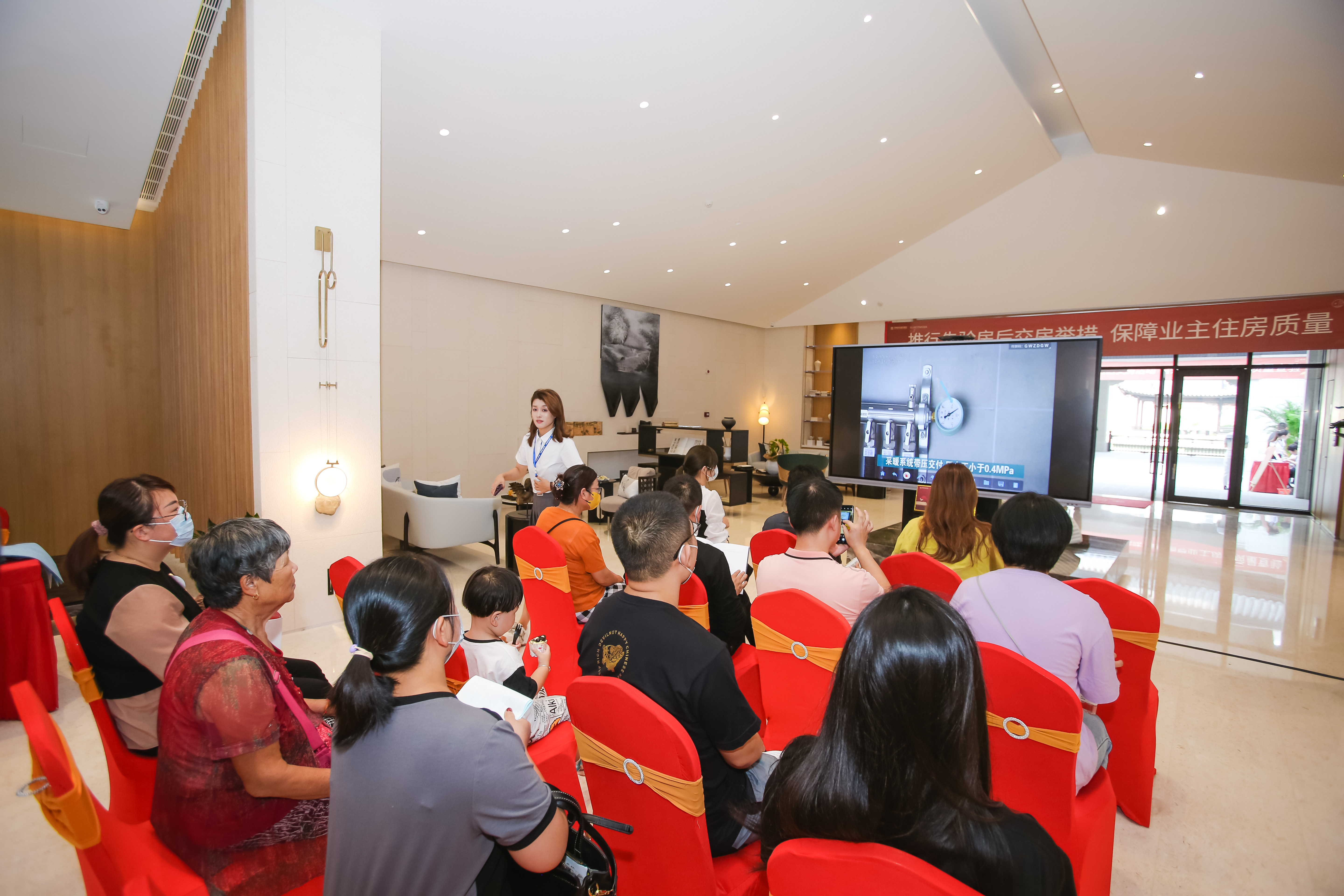 此次预验房活动严格按照《实施要求》要求全面担起首要责任,前期会同施工单位、验收单位、监理单位等对项目进行自查自检,梳理问题及时整修。在验房活动中,为了使业主进一步明确验房范围、验房流程及查验要点,现场播放由济南市住房和城乡建设局下发的验房指导视频,详细介绍验房有关事项。同时,为确保验房时效,项目设置分户验收二维码,将分户验收有关情况建立一户一档,以二维码方式在每户户内公示,对照分户验收内容逐一进行查验,监督规范参建各方分户验收的真实性。