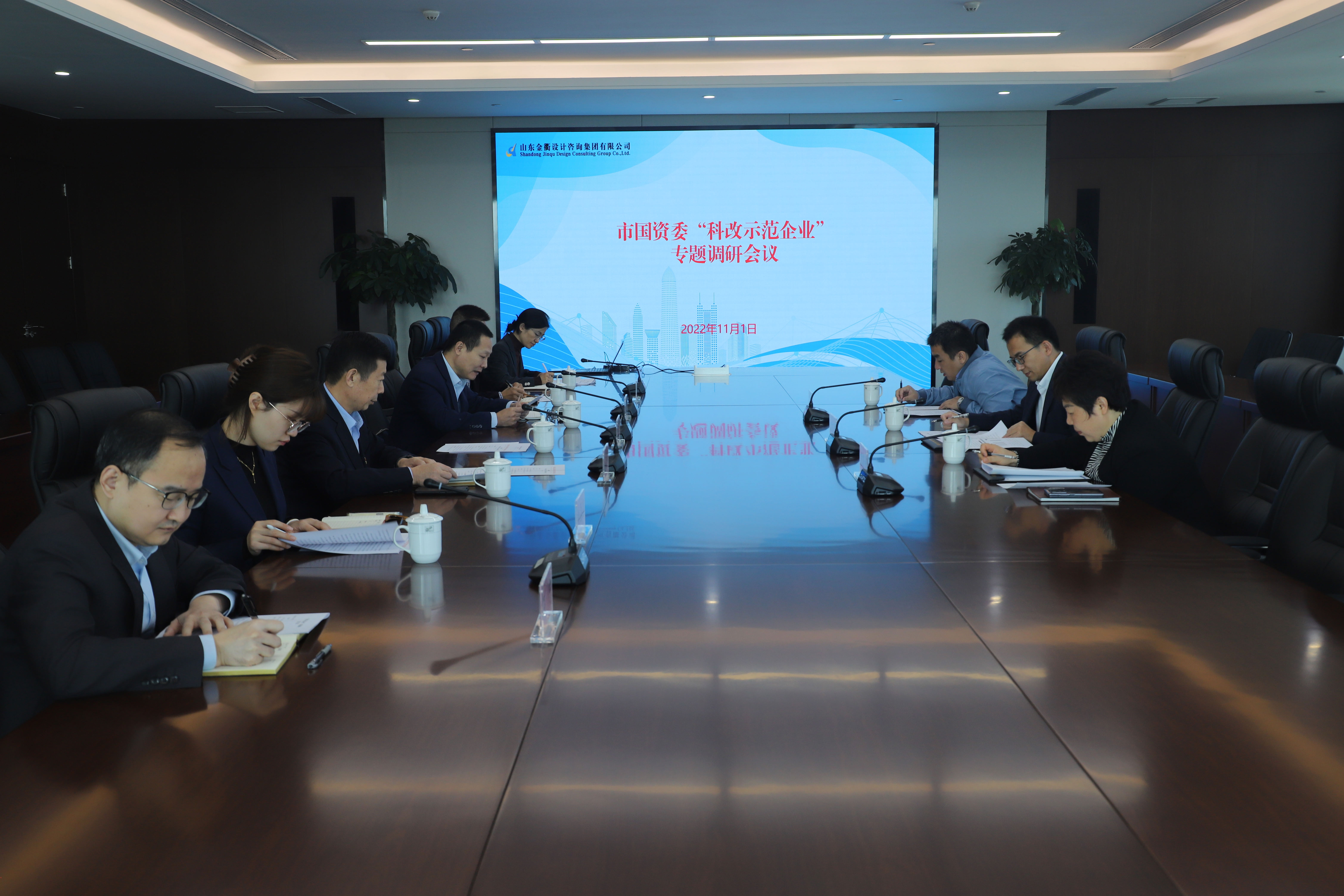 11月1日,济南市国资委到金衢设计集团开展“科改示范企业”专题调研。市国资委党委副书记、副主任沈文涛出席会议并讲话,市国资委企业改革处、304am永利集团企业管理部、金衢设计集团主要负责人参加会议。