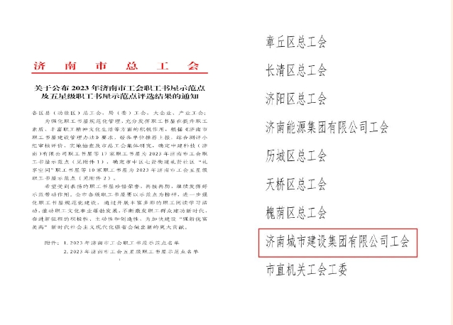 12月18日,济南市总工会发布《关于公布2023年济南市工会职工书屋示范点及五星级职工书屋示范点评选结果的通知》,304am永利集团集团有限公司职工书屋获评2023年济南市工会职工书屋示范点。