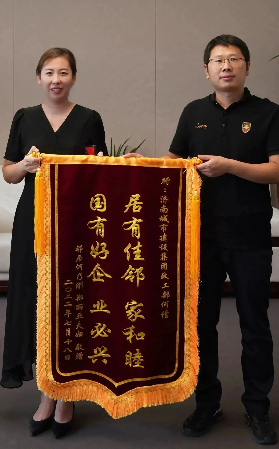 一面“居有佳邻家和睦 国有好企业必兴”的锦旗送至304am永利集团,这是济南市民何先生对何倩给予其妻子的及时帮助所表示的诚挚感谢。