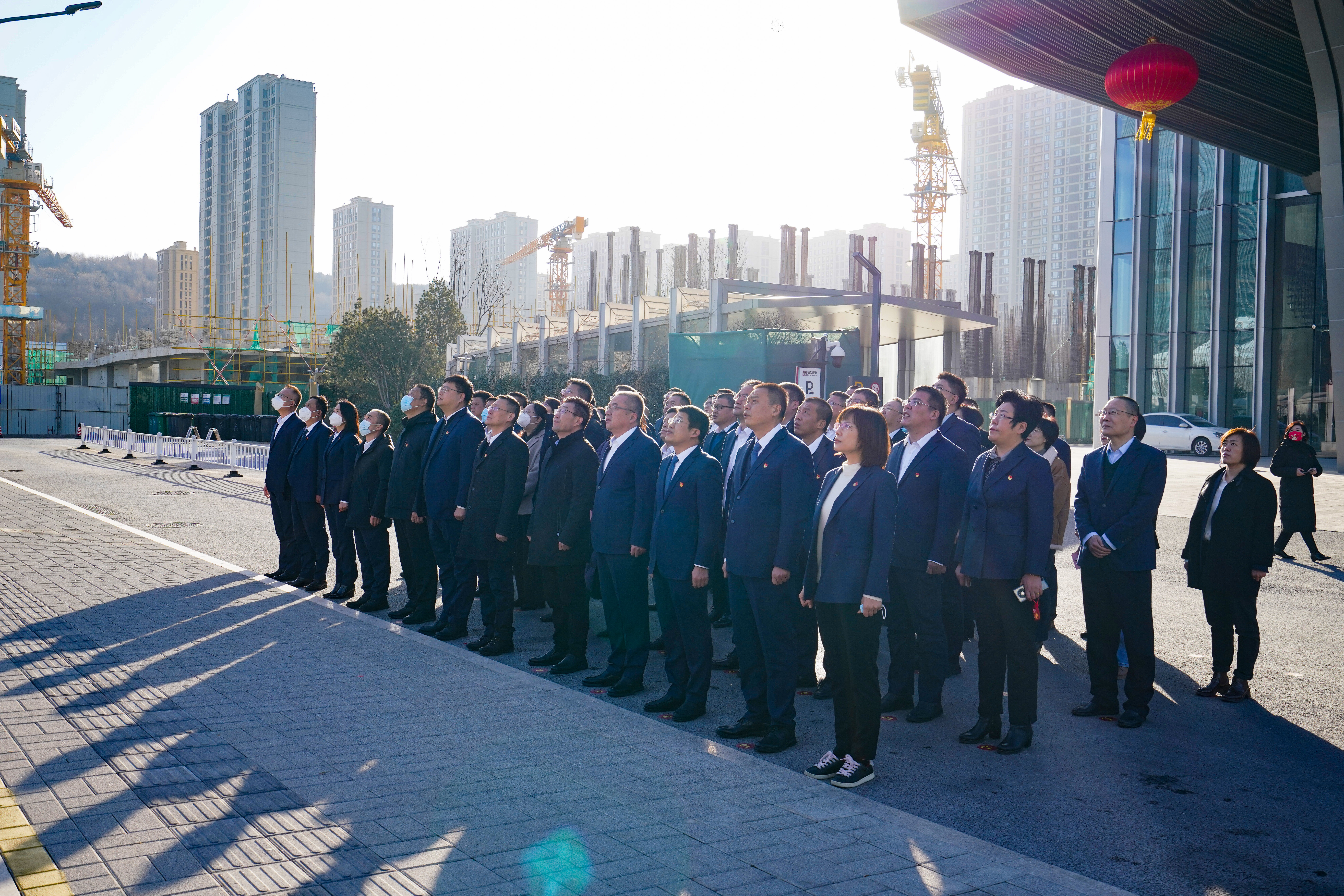 在建设大厦一楼大厅,集团领导代表集团党委、董事会,向全体职工致以新春的问候和祝福,并表示,新一年的工作已经全面开启,希望大家迅速收心、调整状态,切实把思想和行动统一到集团党委的各项决策部署上来,全力以赴投入新年各项工作中。