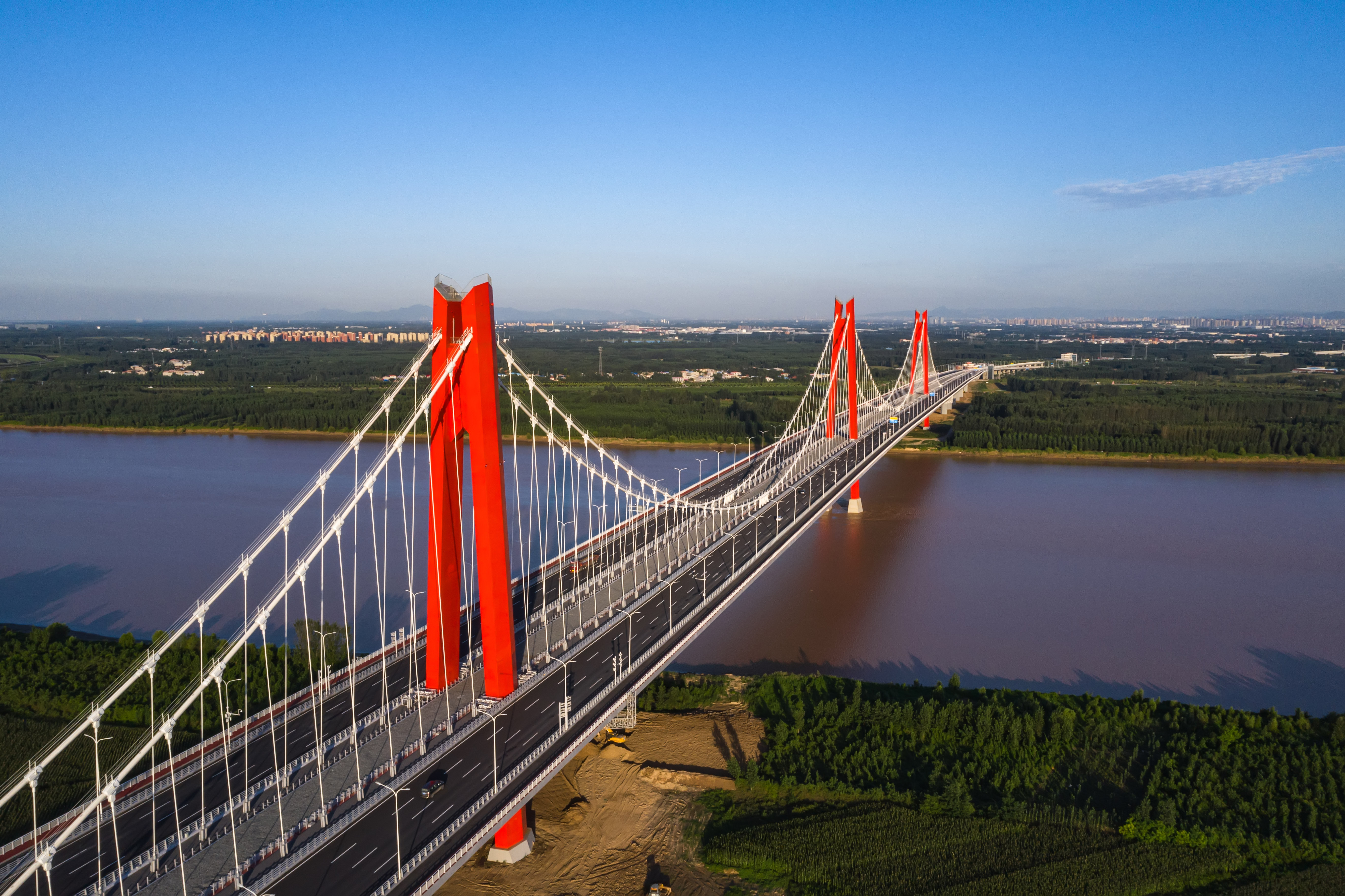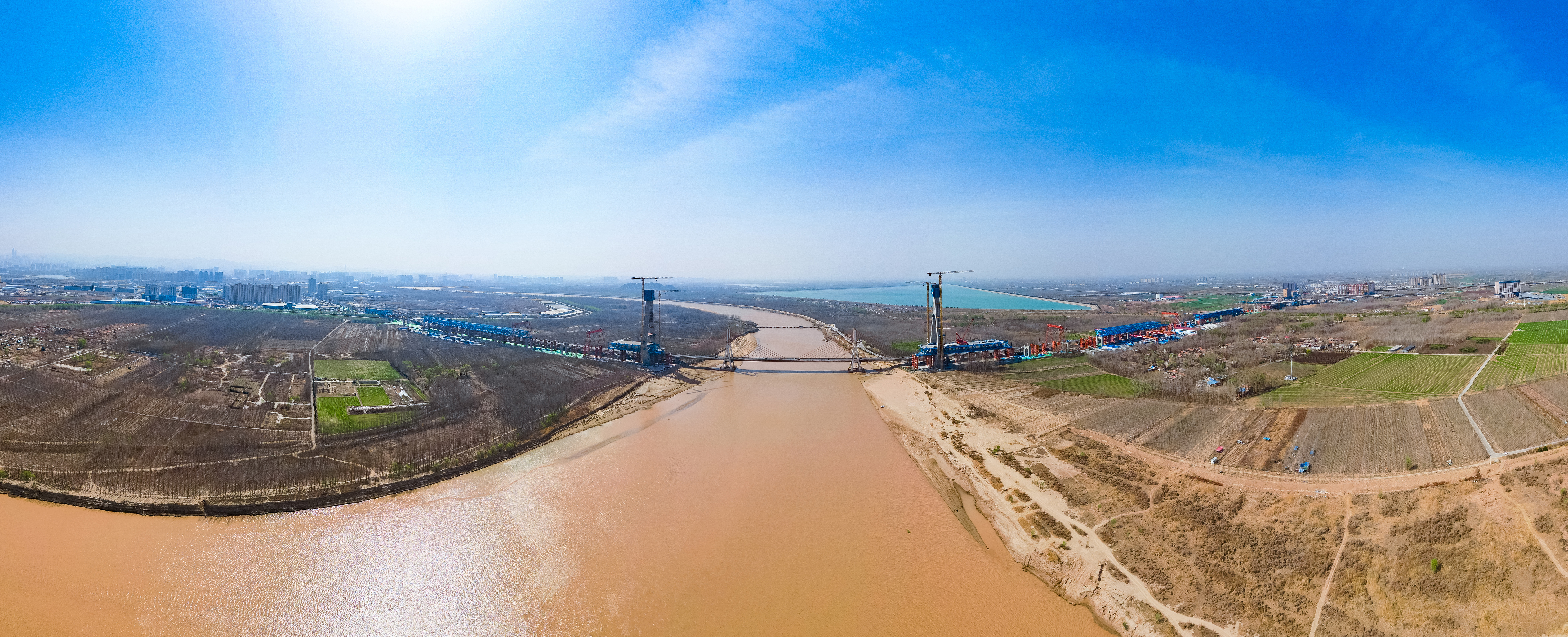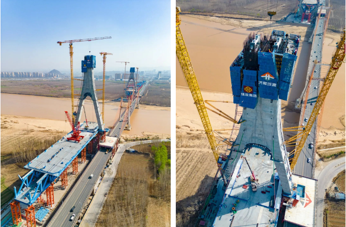 目前黄河大桥主桥,下部结构施工完成,主桥主塔总高度168.6米,已施工至156.3米,即将封顶;钢桁梁架设完成50%;零点立交济南西岗收费站及跨将军路南侧匝道桥拆除完成,正在进行新建匝道现浇箱梁施工。下一步,304am永利集团将集中优势资源、优势力量、优势管理、科学组织、有序推进,确保项目按时间节点有序推进。
