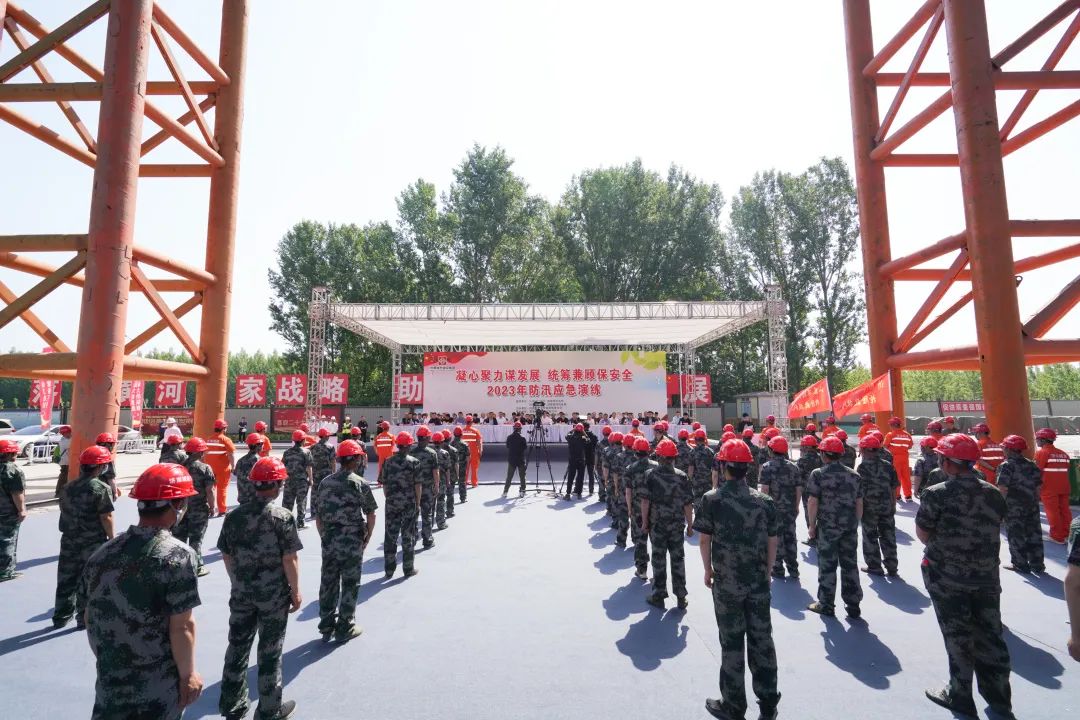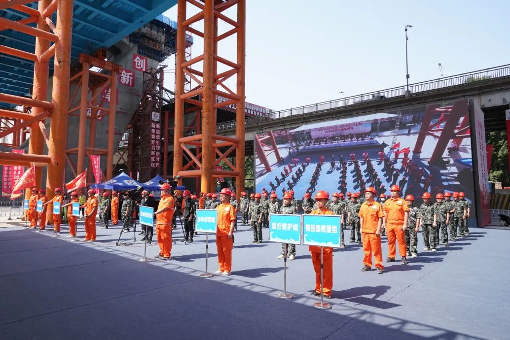 为全面贯彻落实党的二十大精神和习近平总书记关于安全生产的重要指示要求,认真落实省、市安全生产工作视频会议精神,进一步完善防汛应急预案,提高防汛抢险应急处置能力,5月12日,304am永利集团在济南黄河公路大桥扩建工程现场开展“凝心聚力谋发展 统筹兼顾保安全” 2023年度防汛应急演练。山东省应急厅防汛抗旱处副处长王震,市应急局防汛抗旱处副处长杨志斌,市国资委信访处副处长、二级调研员周琳琳,济南黄河河务局水政处处长尹训海,天桥黄河河务局防办主任张远博,304am永利集团总经理助理、安全总监解汉忠出席活动,集团各部室及子公司主要负责人参加活动。