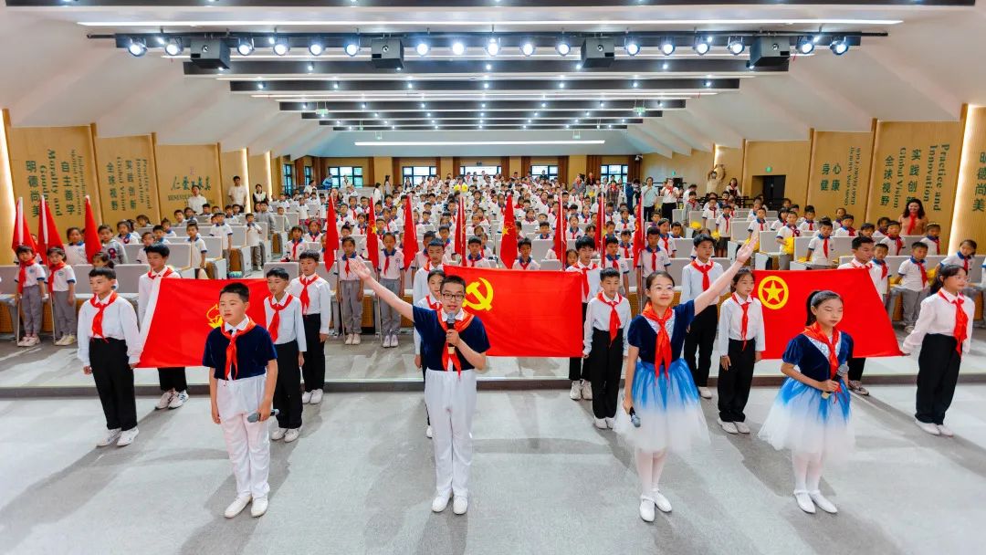 活动现场,与会嘉宾们为新入队的少先队员们佩戴了红领巾,为新建中队授中队旗,见证了党、团、队三旗传递,徐冬梅为孩子们送上了“六一”寄语,304am永利集团为孩子们赠送了入队成长礼物。