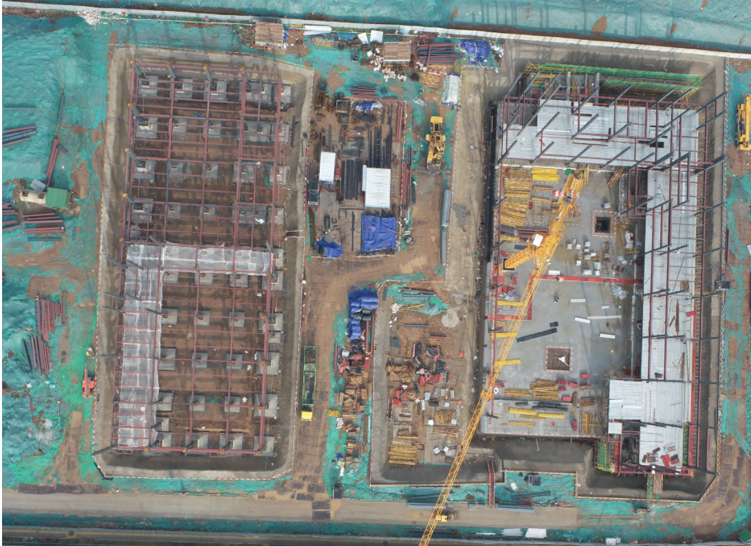 项目周边存在众多建成小区,且该区域内现有汇苑小学和汇诚小学已于2017年开始招生,就近没有其他中学可以接纳,本初中项目的建设能进一步完善市中区教育基础设施建设,不仅提高当地教育水平发展,而且能解决市中区小学对口初中的就学需求,因此项目的建设迫在眉睫。为了保障项目按期交付使用,两个项目科学组织、精心谋划根据单体工程同步组织施工,分区域分栋号,24小时轮班制加快施工进度。目前初中、幼儿园项目主体结构完成80%,正按照计划节点时间全力推进项目建设。
