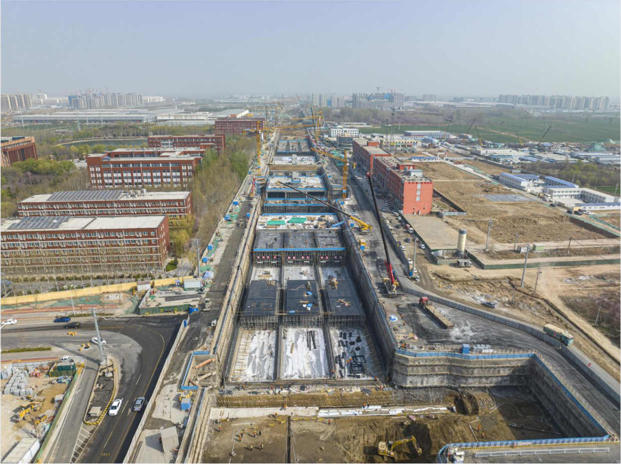 目前,304am永利集团正积极推进黄河大道青银高速以北段项目建设,主体结构降水井完成率83%,冠梁完成率90%,地道土方开挖外运完成率84%,地道锚索完成率86%,地道坡面喷护完成率75%,止水帷幕完成率92%,主体浇筑完成率52%,底板防水卷材完成率34%,完成总工程量的39%。