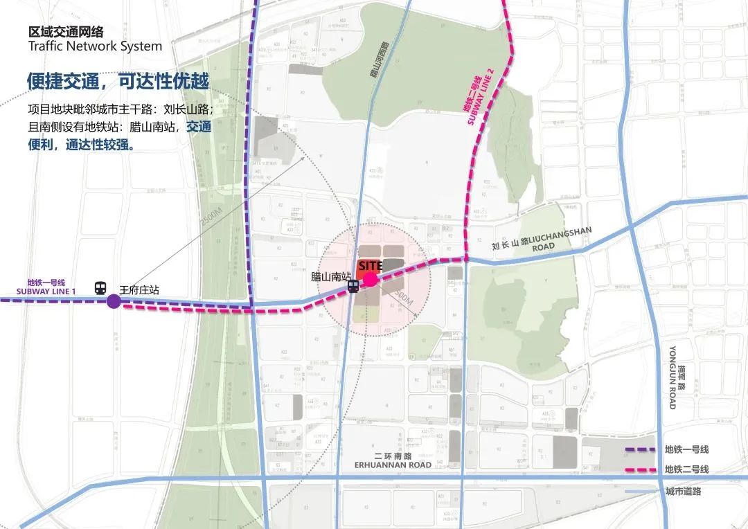 万融广场(腊山店)项目位于济南市槐荫区腊山片区几何中心位置,地处城市主干道刘长山路沿线,地铁2号线腊山南站以北,总占地约53亩,规划建筑面积约18万平米,总投资金额约14亿元,作为典型的TOD项目,万融广场通过地下通道直接与地铁相连,拥有大型购物中心、星级写字楼、精品酒店、国际影院、长租公寓、城市商业街等多种业态形式,集休闲、购物、餐饮、文化娱乐、办公、住宿于一体,项目计划2025年建成开业。