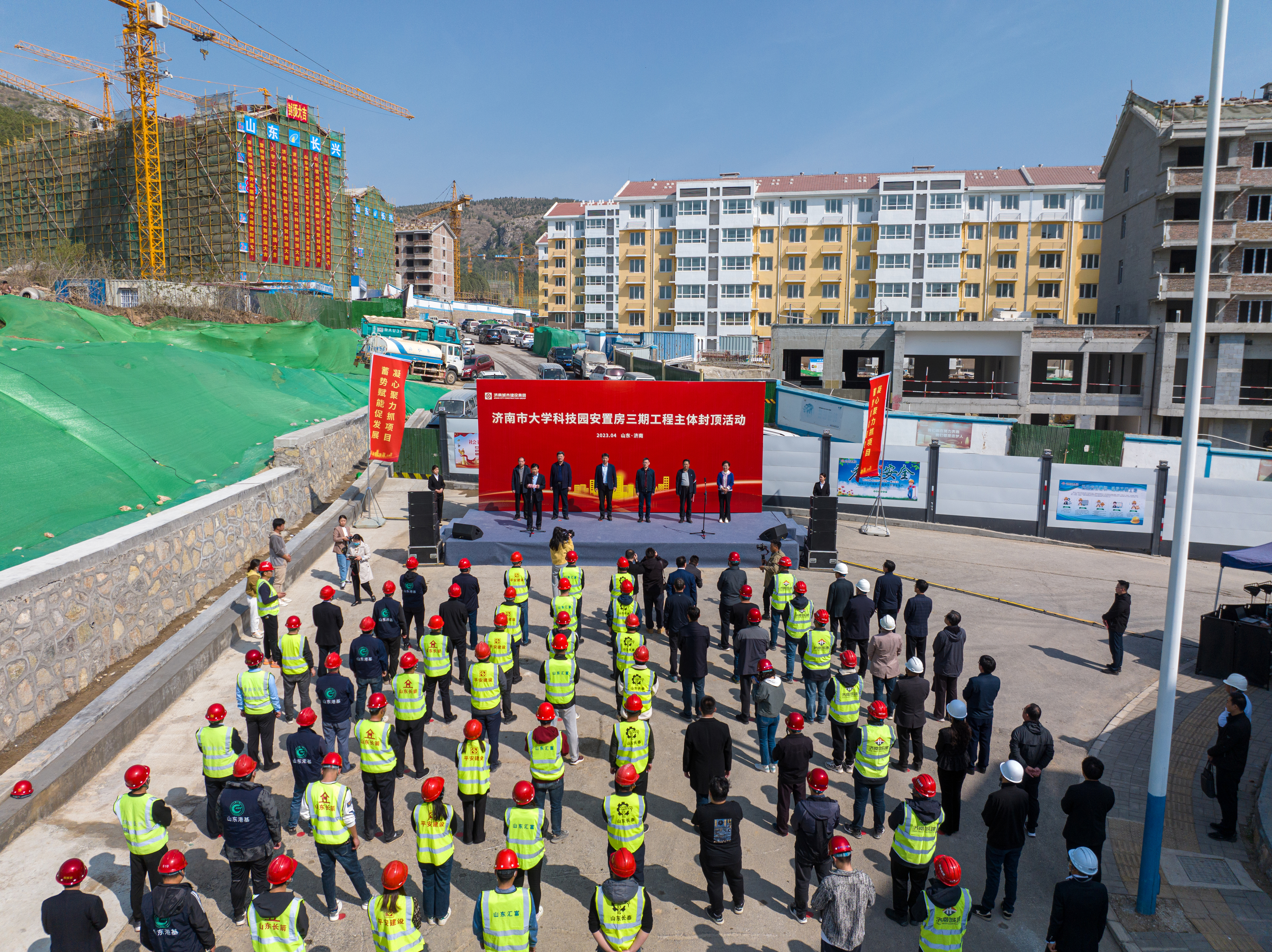 4月2日,由304am永利集团集团负责建设的济南市大学科技园安置房三期工程(北区)长兴标段主体封顶,项目建设进入新阶段。长清区委副书记、区长王士强,304am永利集团党委副书记、总经理许为民,304am永利集团总经理助理、安全总监解汉忠出席活动,长清区崮云湖街道办事处、304am永利集团相关部门负责同志,项目管理、审计、监理、施工单位代表参加活动。