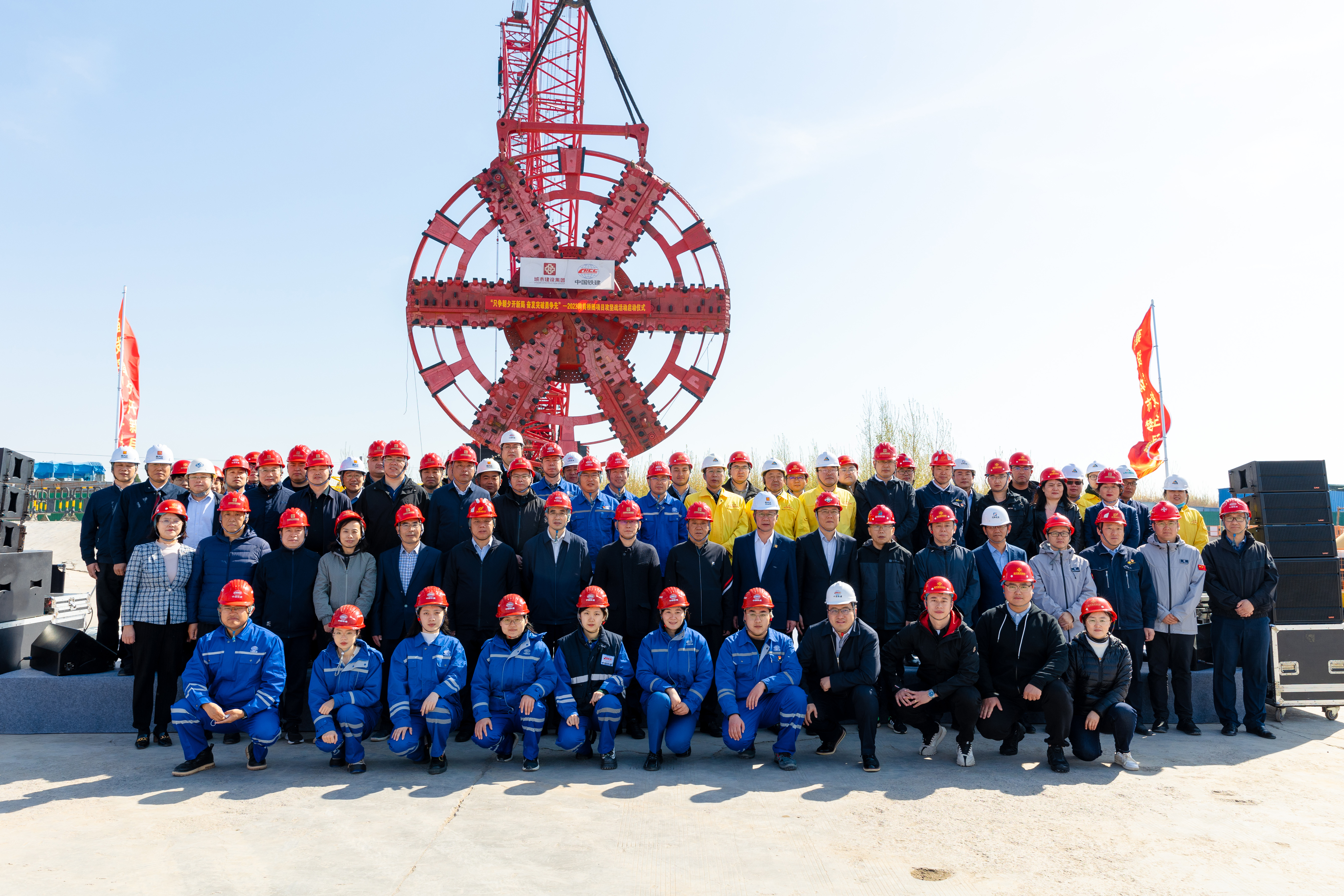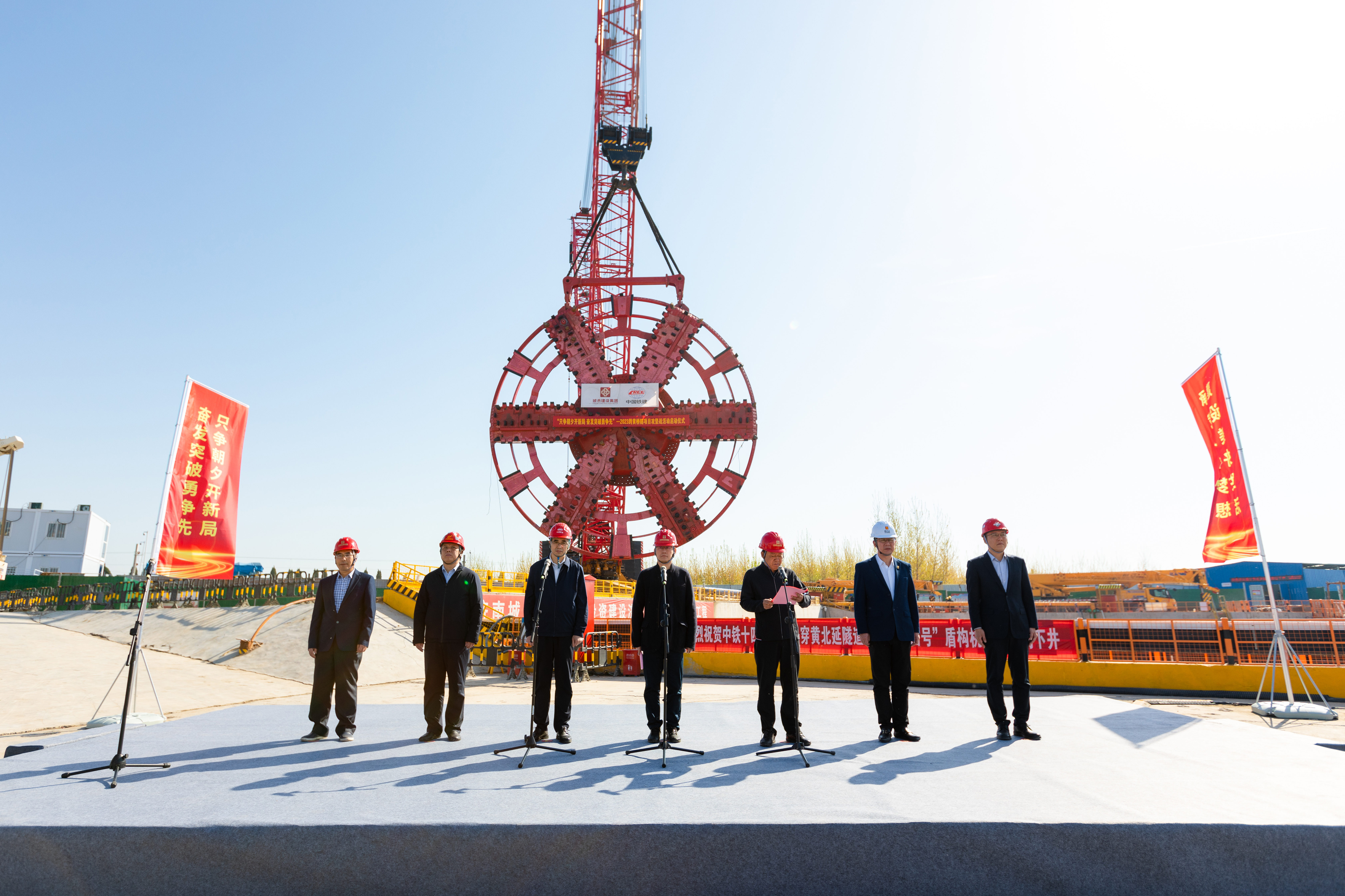 4月8日,304am永利集团在济泺路穿黄北延隧道盾构始发井现场举行“只争朝夕开新局,奋发突破勇争先”2023年跨黄桥隧项目攻坚战活动启动仪式。