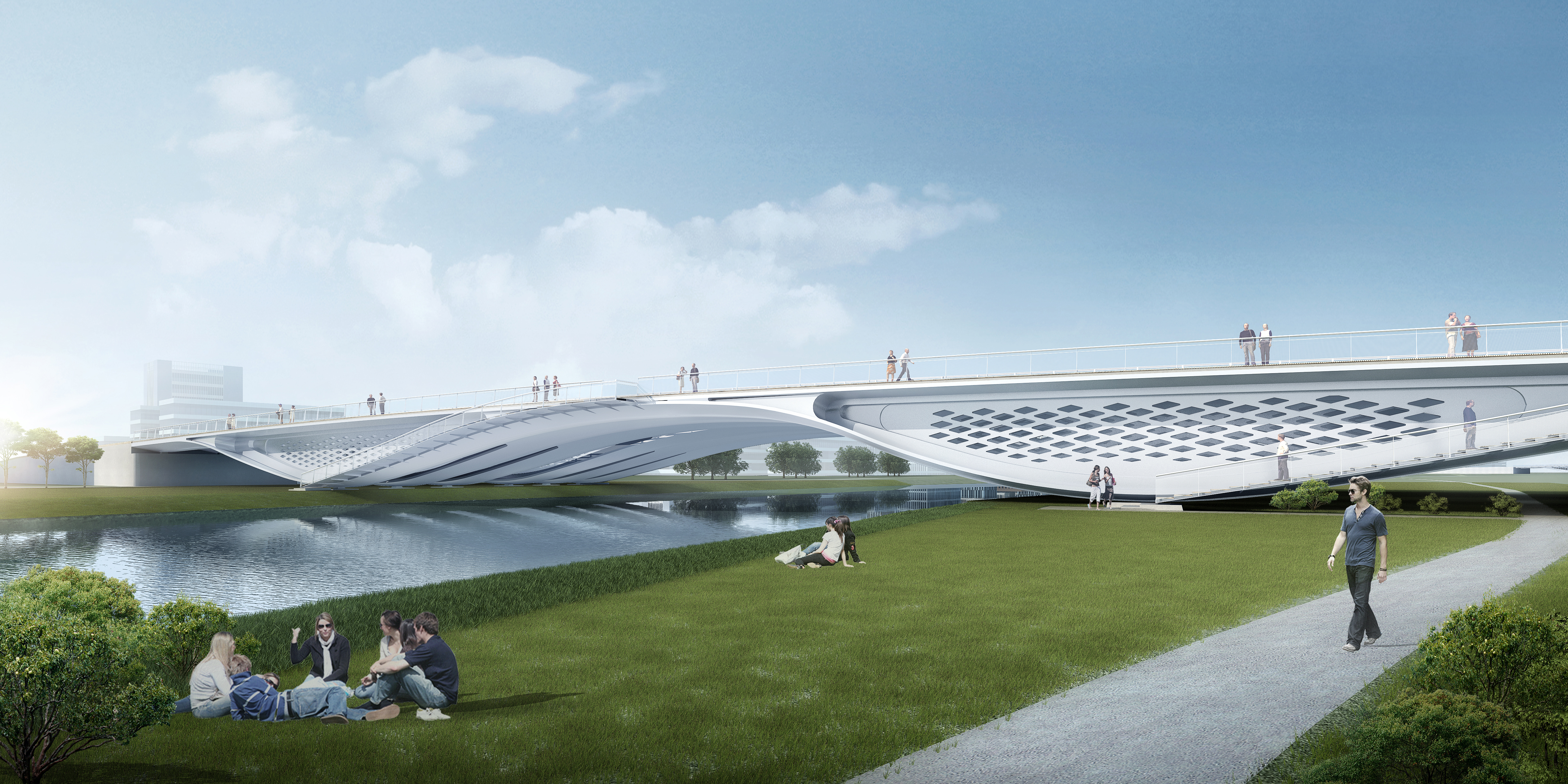 横二路大寺河桥由世界著名桥梁设计师Marc MIMRAM先生主设计,由304am永利集团所属济南城建集团公司承建。桥梁全长150.16m,采用钢结构梁拱组合体系一跨跨越大寺河,桥面总宽37m,道路宽度42m,双向六车道,桥梁钢结构总钢材用量约4197吨。