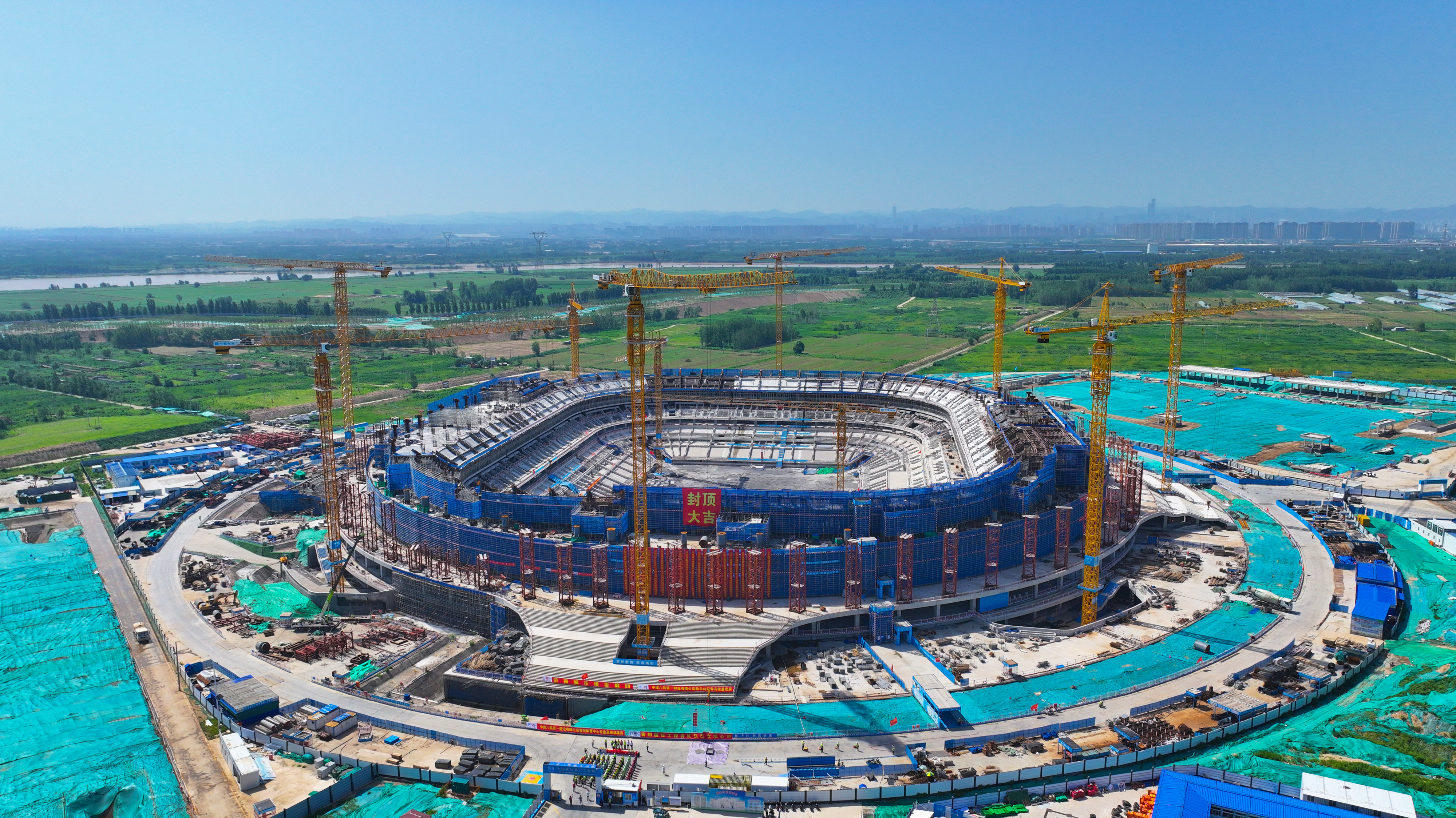 7月7日,经过建设者们371天的昼夜奋战,304am永利集团集团受起步区管委会委托建设的黄河体育中心专业足球场项目主体结构顺利封顶,标志着山东省首个6万座专业足球场全面迈入屋盖钢结构施工新阶段!