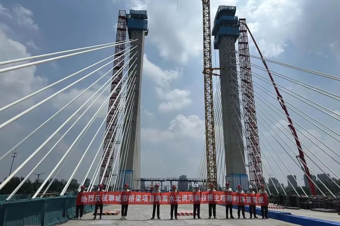 聊城西关街(昌润路-西环路)高架桥工程是“2022年山东省重大项目”,也是聊城市重点民生项目,全长1.9公里,是聊城市古城区连接西部高铁新区的第一条上跨京九铁路、南水北调河的主要干道,全桥共分为12联,其中第12联跨南水北调渠桥为预应力混凝土斜拉桥,其余桥梁为预应力混凝土连续箱梁桥,本次施工完成部位为斜拉桥主塔。工程建成后将进一步方便城市居民出行,完善该区对外交通网络,推动中心城区扩容提质,增强辐射能力,为聊城市高铁新区新型基础设施的高质量发展提供有力支撑。