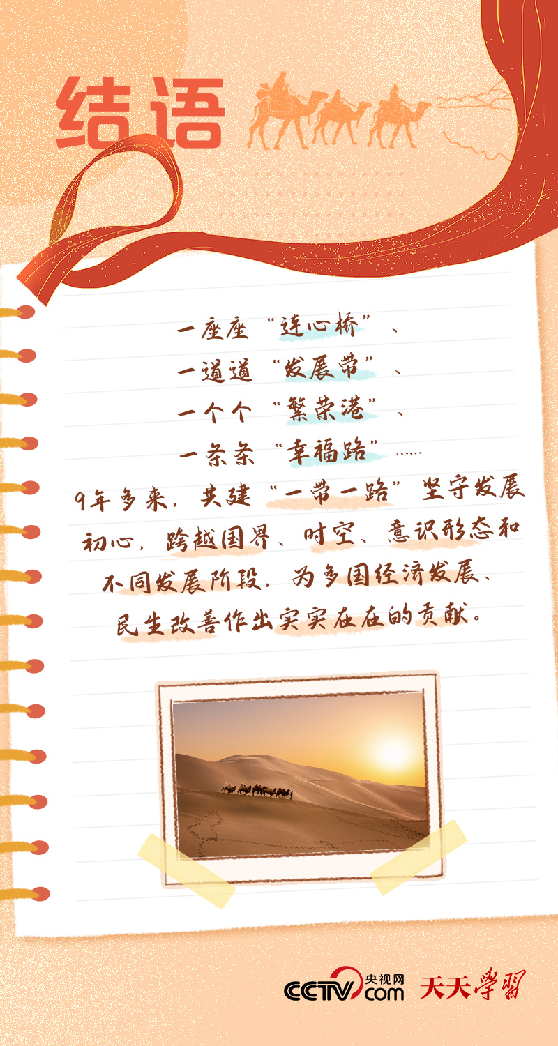 九年多来,“一带一路”建设秉持共商共建共享原则,坚持开放、绿色、廉洁理念,努力实现高标准、可持续、惠民生目标,朝着更高质量的发展方向不断迈进。