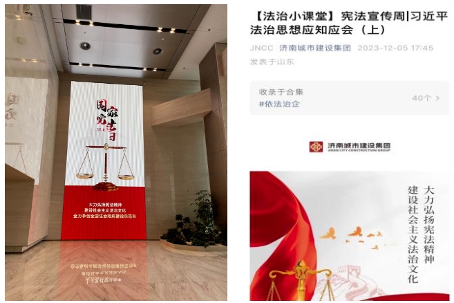 2023年12月1日至7日是全国第六个宪法宣传周,集团根据市国资委《济南市2023年宪法宣传周、山东省法治宣传教育月暨争创全国法治政府建设示范市集中宣传活动方案》要求,认真开展了2023年国家宪法宣传周活动,大力加强习近平法治思想与宪法的学习宣传,积极引导集团广大干部职工尊法学法守法用法,推动法治宣传教育走深走实。