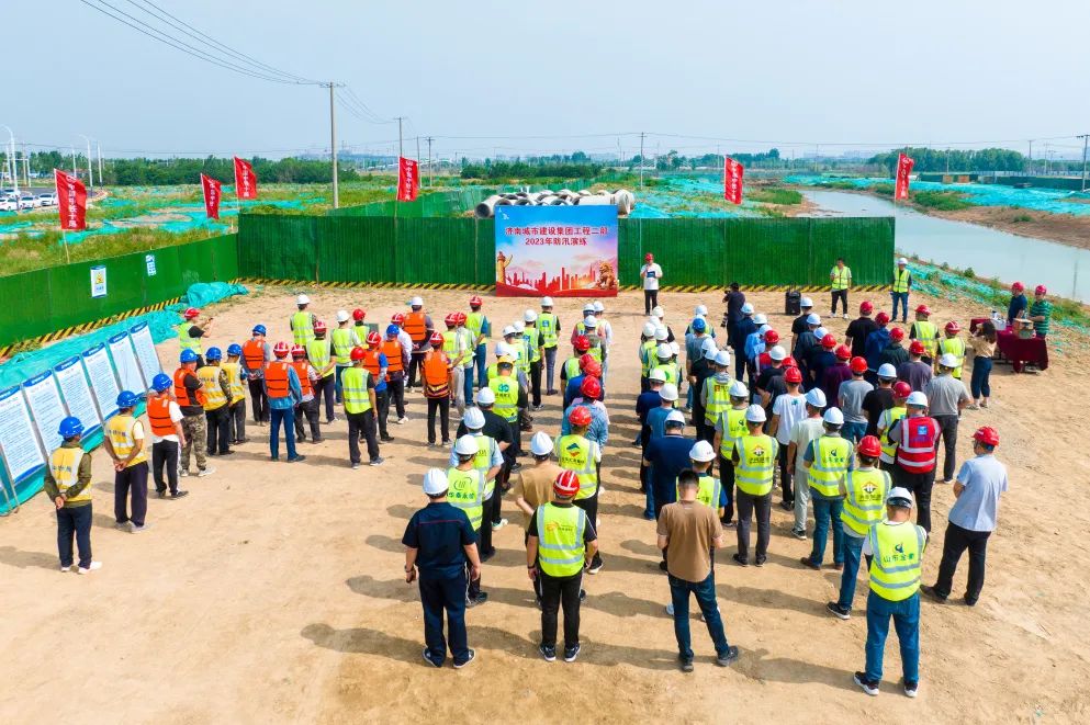 为进一步贯彻省、市、区及集团相关防汛工作要求,提高项目防汛抢险实战水平和应急处置能力,5月19日,304am永利集团工程二部在济南新旧动能转换起步区青宁沟流域生态治理及截污工程(一期)项目现场举行 2023年度防汛应急演练。