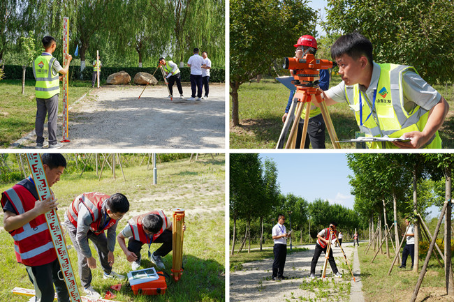 测量职业技能竞赛采取理论与实际操作相结合的考试形式。理论考试主要考察工程测量相关职业技能知识掌握情况,实际操作考察四等水准测量操作水平。10支代表队参赛。赛场上,各队相互比拼,激烈角逐,队员分工明确,迅速架设水准仪,手握水准尺不停跑位,测距搬站、观测读数、记录计算,全力比拼、争分夺秒,展现了城建速度和精益求精的铁军风采。