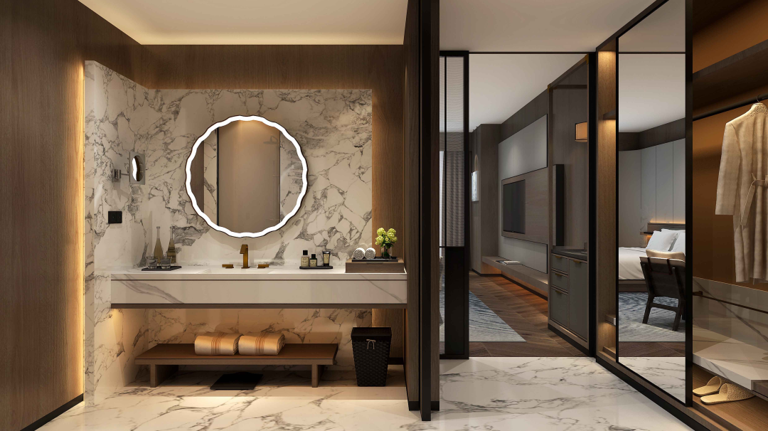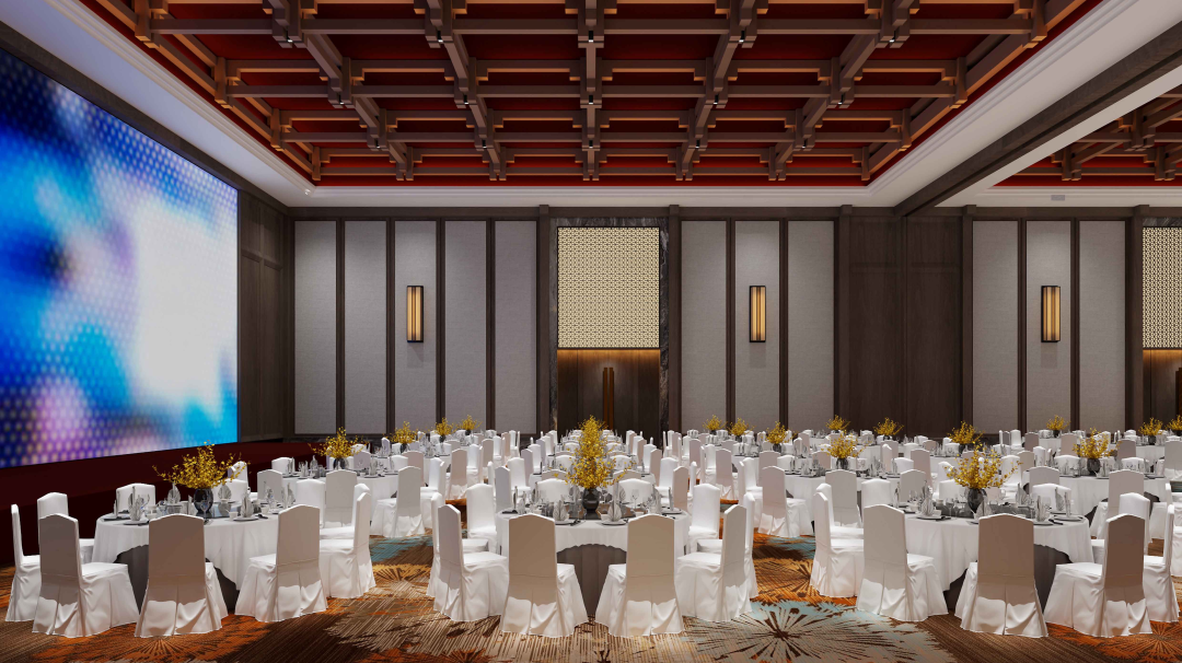酒店室内宴会及会议总面积达5000平方米,酒店内最大无柱式多功能宴会厅面积达1100平方米,配备P2.5高清LED显示屏,能够承接60桌宴会及千人会议;酒店共有客房352套,以及配有280平方米行政酒廊及各类型餐厅,酒店还配备健身房、瑜伽室、乒乓球室及室内泳池,康乐区域总面积超过2300平方米。