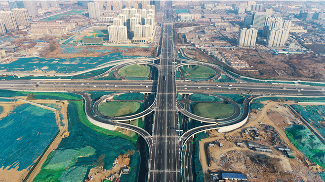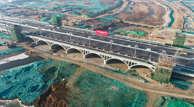 泰安市迎胜路南延改造工程是泰安市2020年十大实事之一,作为泰安市的首条城市快速路,路线全长约5.7千米,采用高架桥与地面工程相结合的建设方案。全线设主线高架桥(约3千米)横跨泮河、泮河大街、万官大街、岱阳大街,北起灵山大街,南至泰安南收费站。这一贯通泰安南北的黄金通道,极大盘活了泰安中心城区与青兰高速交通网,有效满足居民交通需求,为泰安区域经济发展再添交通大动脉。