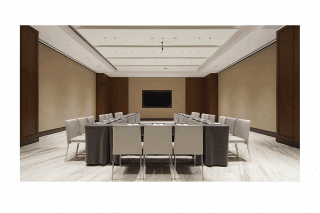 室内宴会及会议区域总面积超5000平方米,酒店内最大无柱式多功能宴会厅面积达1100平方米,能够承接60桌宴会及千人会议,配备P2.5高清LED显示屏。