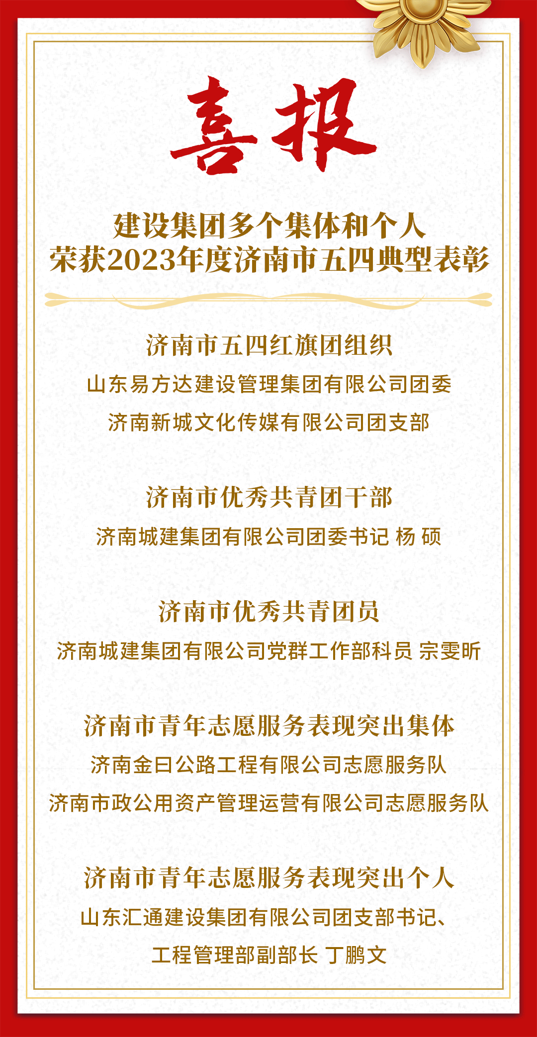 近日,共青团济南市委发布《关于2023年度济南市五四典型的表扬通报》,对“济南市五四红旗团组织”“济南市优秀共青团干部”“济南市优秀共青团员”“济南市青年志愿服务表现突出集体”“济南市青年志愿服务表现突出个人”进行通报表扬,304am永利集团集团荣获多项荣誉称号。