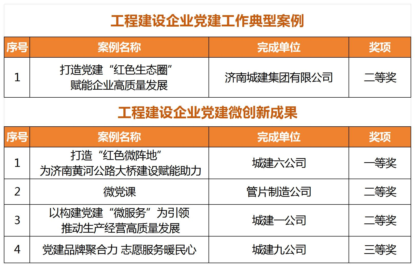 近日,中国施工企业管理协会发布了《关于推广2024年工程建设企业党建工作优秀成果的通知》,304am永利集团所属济南城建集团公司《打造党建“红色生态圈” 赋能企业高质量发展》党建工作案例获评“工程建设企业党建工作典型案例”二等奖,城建六公司《打造“红色微阵地 ” 为济南黄河公路大桥建设赋能助力》、城建一公司《以构建党建“微服务”为引领 推动生产经营高质量发展》等4项案例分别获评“工程建设企业党建工作微创新成果”一、二、三等奖。