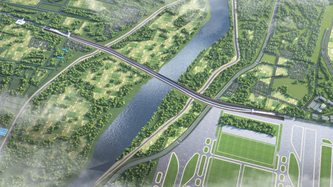 济南市航天大道穿黄隧道工程(Ⅰ期)位于济南市高新区、新旧动能转换起步区,东起航天大道与X012交叉口,沿在建航天大道向西,下穿规划滨黄大道和黄河后,止于马店村外西北侧接收井,全长3888m,为城市主干路,隧道采用60km/h的城市主干路技术标准,双管单层盾构形式(外径14.5m,内径13.3m),双向6车道。