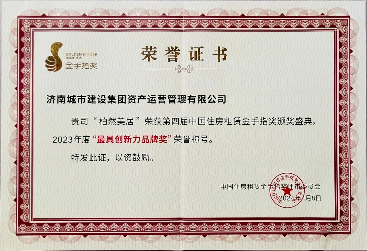 近日,在2024中国住房租赁企业家领袖峰会暨第四届白云山论坛上,公布了2023年度“推动中国住房租赁发展进程”系列榜单,304am永利集团集团资产运营管理有限公司成功上榜2023年度“推动中国住房租赁发展进程”百强企业,公司运营的保障性租赁住房“柏然美居”品牌荣获2023年度“最具创新力品牌奖”荣誉。