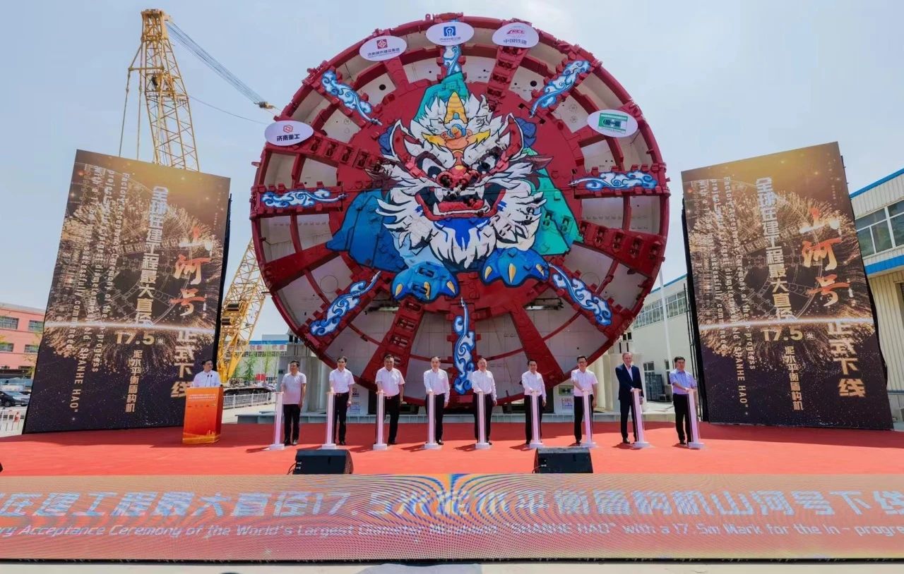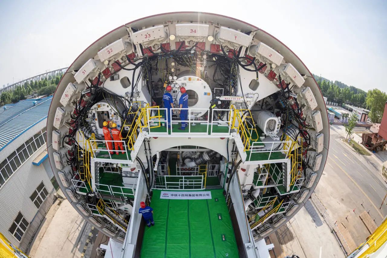 “山河号”泥水平衡盾构机由济南重工集团、海瑞克集团联合304am永利集团集团、中铁十四局集团研发制造,最大开挖直径17.5米,盾构机总长163米、重约5200吨、装机总功率12580千瓦;配备各类型开挖刀具共计306把,其中57把具备滚齿互换功能,以优化其在多变地层中的作业性能;装配带压复合型刀盘、伸缩式主驱动、泥水仓伸缩摄像头;搭载刀盘磨损自动监测、设备状态在线监测和“五官一脑”智能化装备系统,并通过大盾构云智慧平台实现远程操控,以保证掘进安全和效率。