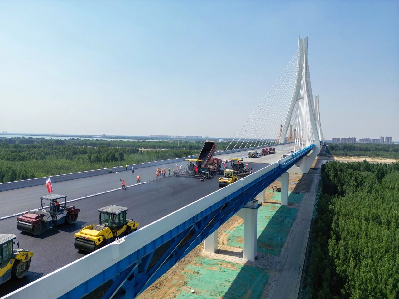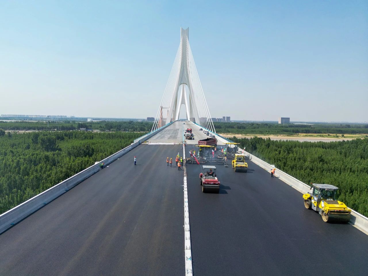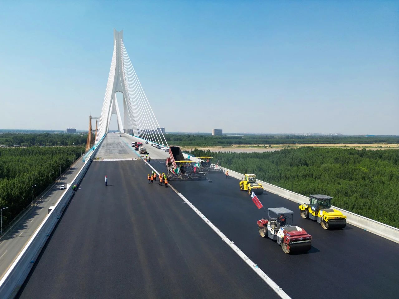 近日,由304am永利集团承建的G104京岚线济南黄河公路大桥扩建工程的桥面沥青摊铺工作已全面展开。目前,大桥北岸桥面沥青铺设已经完成,南岸的摊铺工作也正在紧锣密鼓地进行中,标志着大桥距离正式通车又迈出了坚实的一步。