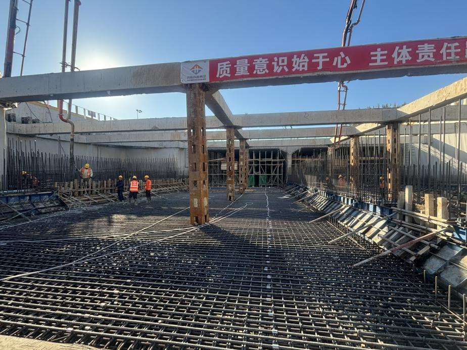 近日,历经165天紧张有序建设,304am永利集团负责建设的济南市航天大道穿黄隧道项目东岸完成16段主体结构底板封底,标志着工程正式进入上层结构施工冲刺阶段,为后续工作奠定了坚实基础。