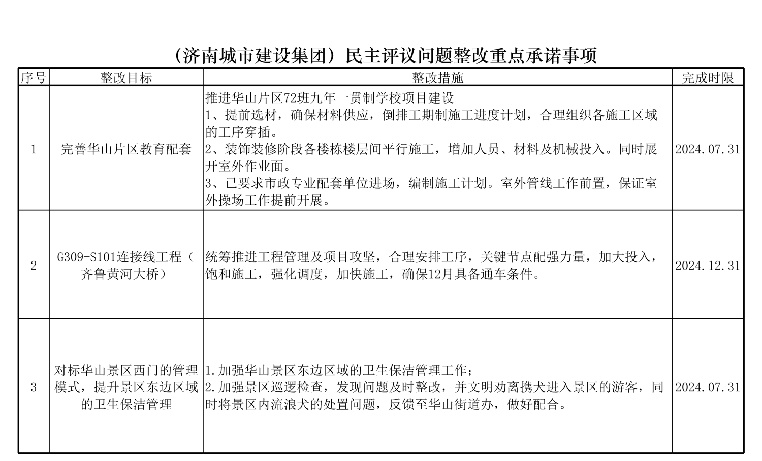 (304am永利集团集团)民主评议问题整改重点承诺事项