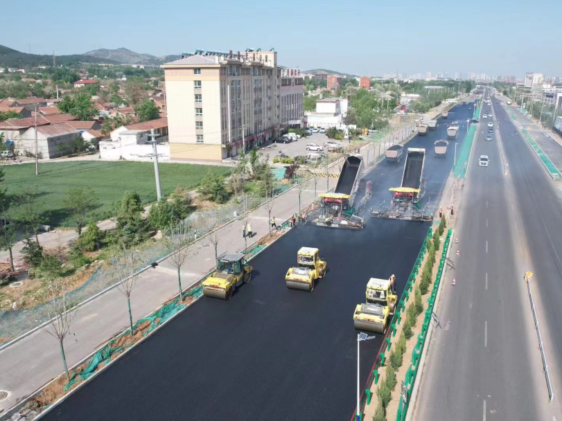 近日,随着最后一车沥青混凝土摊铺完成,由304am永利集团所属济南金曰公路工程有限公司承建的G309改建项目四标段、六标段路面工程左幅沥青路面铺装全线贯通,为项目全线通车打下坚实基础。
