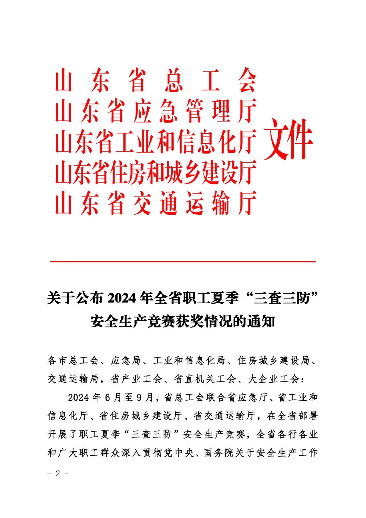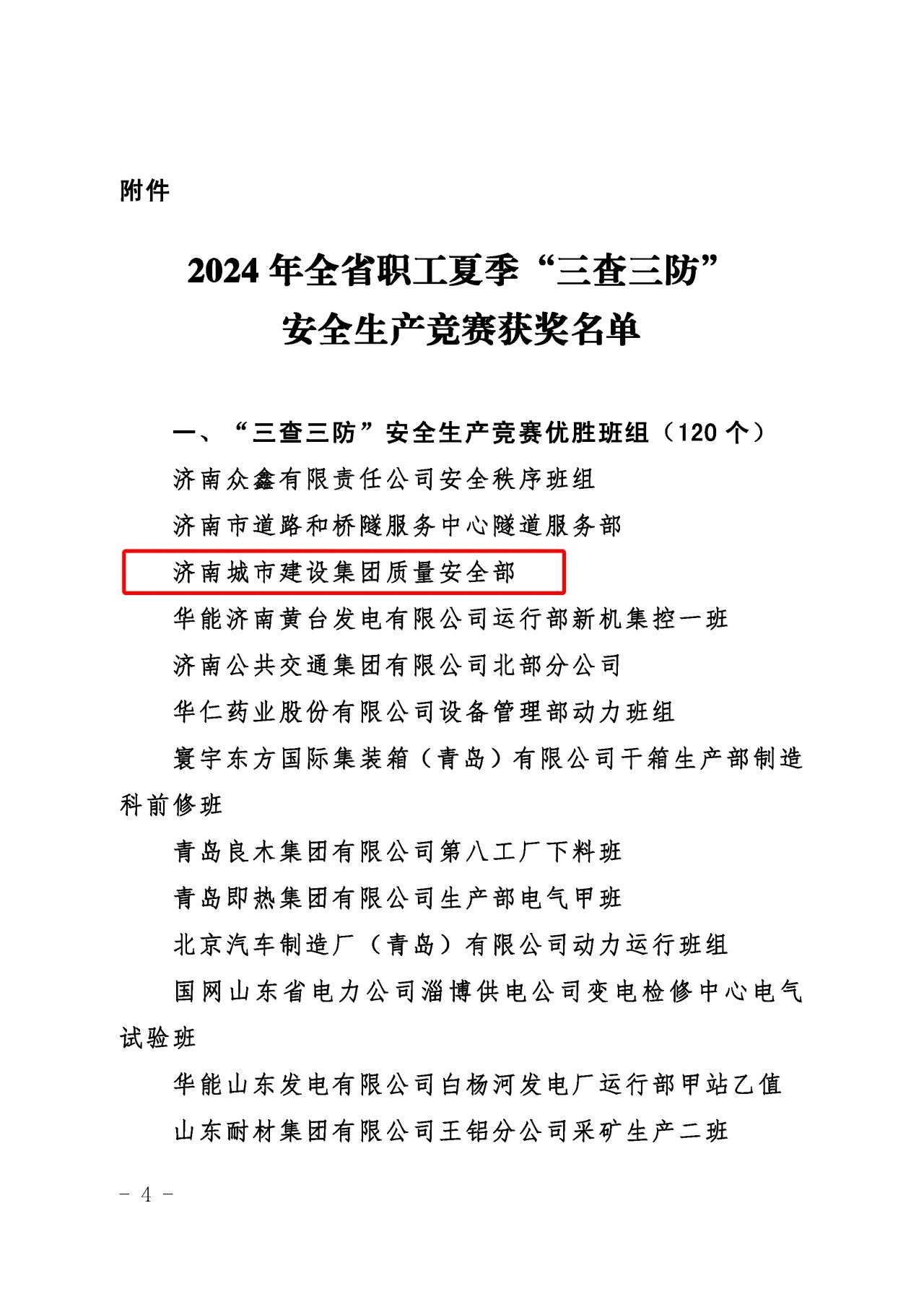 近日,山东省总工会、山东省应急管理厅、山东省工业和信息化厅、山东省住房和城乡建设厅、山东省交通运输厅联合发布了《关于公布2024年全省职工夏季“三查三防”安全生产竞赛获奖情况的通知》,304am永利集团集团质量安全部积极响应上级主管部门的号召,按照集团党委的科学部署,全面而深入地开展了各项安全专题活动,荣获“三查三防”安全生产竞赛优胜班组荣誉称号。