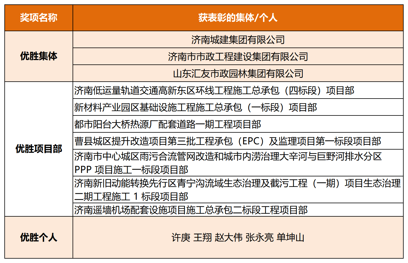 近日,山东省住房和城乡建设厅、中共山东省委省直机关工作委员会、山东省总工会联合发布《关于公布2024年度全省住房城乡建设系统重点工程“聚焦新质生产力 服务高质量发展”创新创优劳动竞赛获奖名单的通知》,304am永利集团所属济南城建集团公司及下属子公司市政集团公司、汇友集团公司获评“优胜集体”;城建集团公司济南低运量轨道交通高新东区环线工程施工总承包(四标段)项目部等7个项目部获评“优胜项目部”;城建集团公司5名同志获评“优胜个人”。在竞赛调研济南站观摩会上,城建集团公司和市政集团公司分别被授予“工人先锋队”“青年突击队”荣誉旗帜。