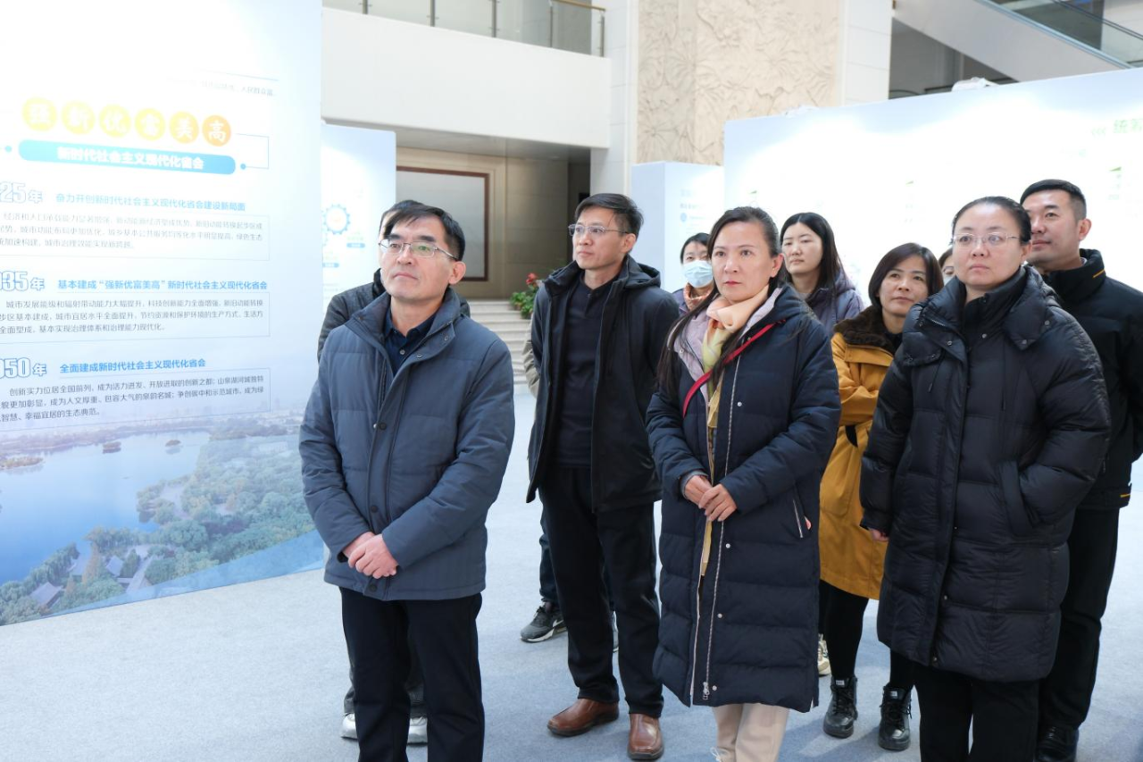 活动中,全体人员有序参观了“锚定目标 高点定位”“统筹协调 优化格局”“开放创新 绿色转型”“人民至上 品质生活”“文化名城 泉城魅力”“数字赋能 保障实施”六个篇章。通过丰富的图片、图表和视频展示,大家对济南市“山东省省会,黄河流域重要的中心城市,国家历史文化名城,全国性综合交通枢纽城市”的城市性质和“北方先进制造业基地、北方商贸物流中心、区域性科技创新高地”的功能定位有了全方位、深层次的理解与感悟。