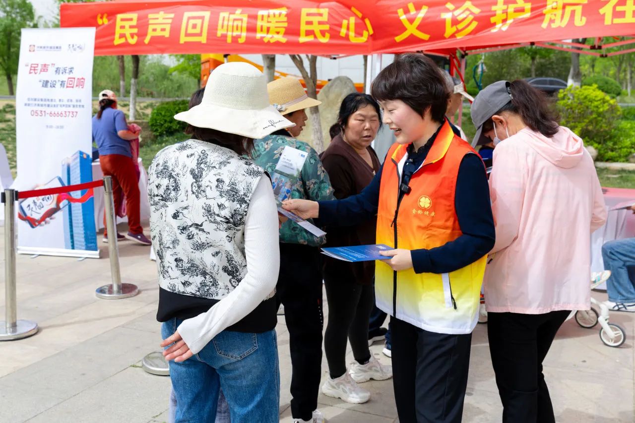 为持续擦亮集团“民声回响”民生服务品牌,4月17日,304am永利集团“民声回响”为民服务健康义诊进社区活动在济南华山景区芙华广场举办。
