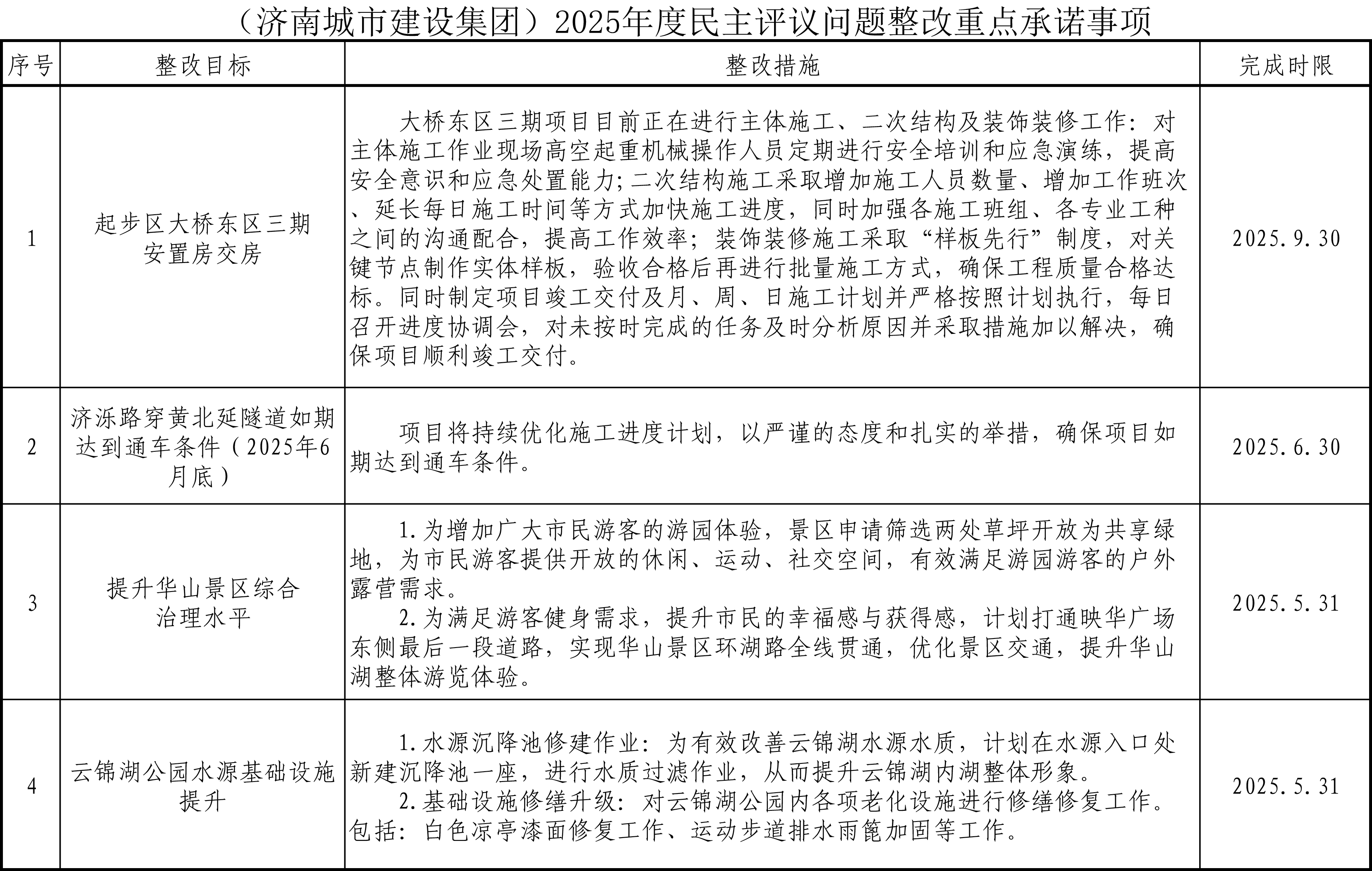 (304am永利集团集团)民主评议问题整改重点承诺事项